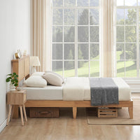 The GARVEE Full Bed Frame combines a sleek, modern aesthetic with practical storage solutions, making it the ideal centerpiece for any contemporary bedroom. Its natural rattan headboard adds a touch of organic elegance to your space.