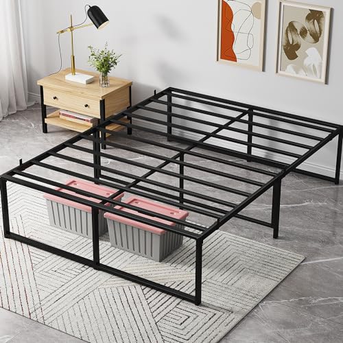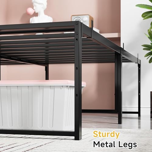 Garvee 13.9 Inch Full Size Metal Bed Frame Heavy Duty Metal Platform with Steel Slat Support with Metal King Bed Platform with Wooden Headboard and Footboard Noise Free No Box Spring Needed