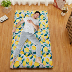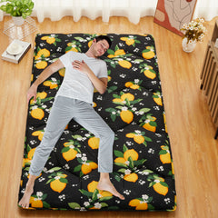Garvee Full Size Futon Mattress, Portable Tatami Floor Mat Sleeping Pad, Modern Roll Up Thick Lemon Pattern Japanese Mattress for Guest Room, Camping, Dormitory, Black (53" x 80")