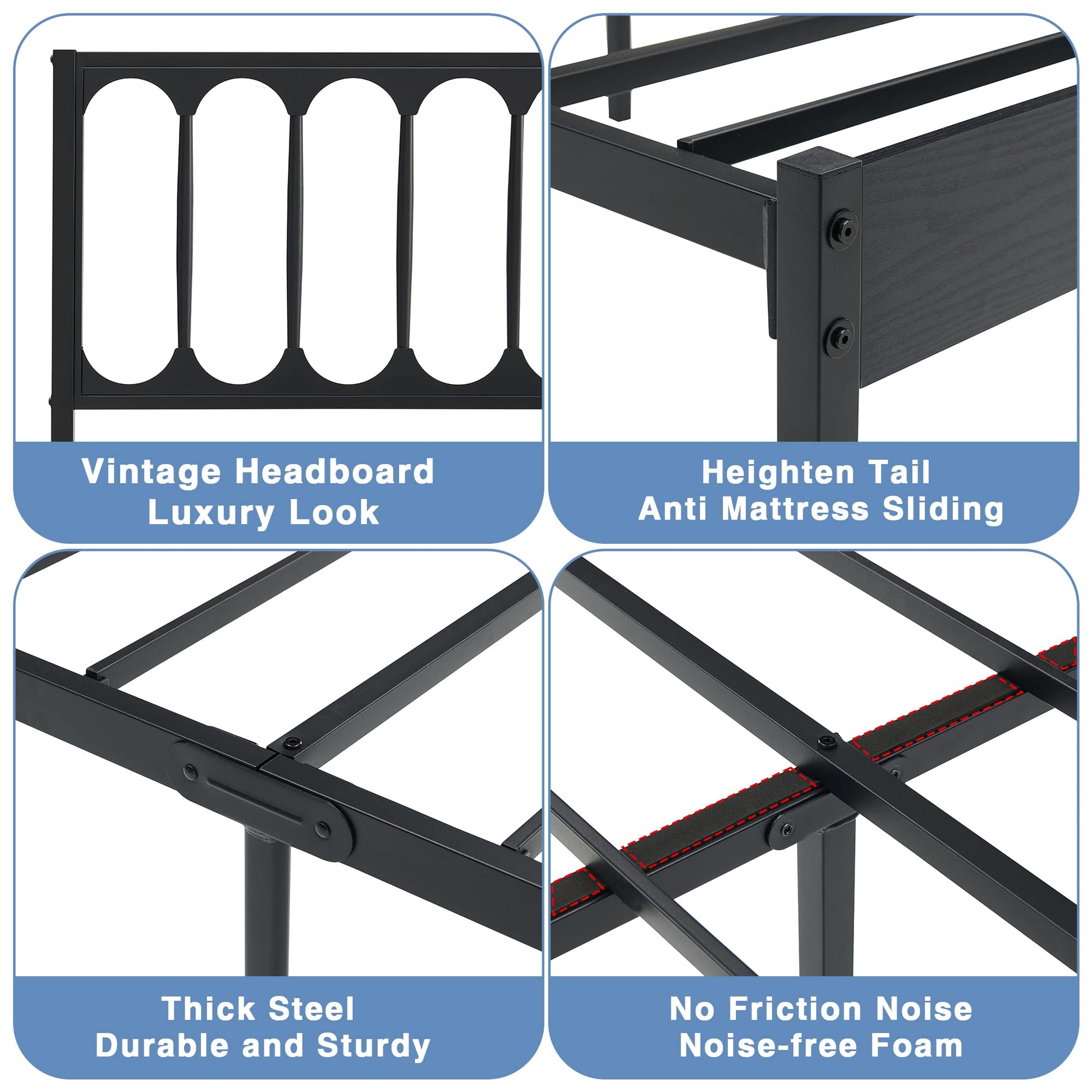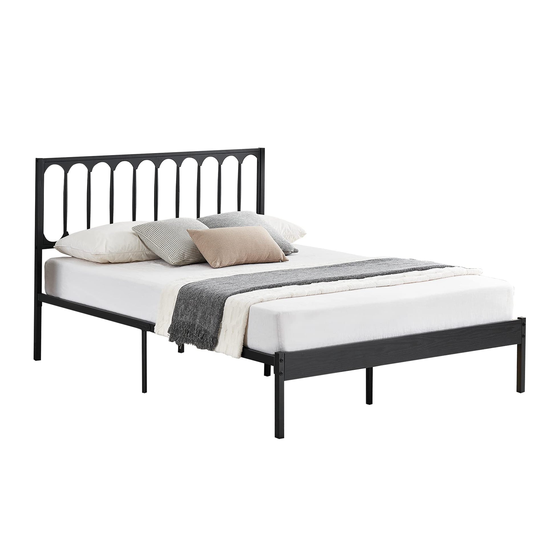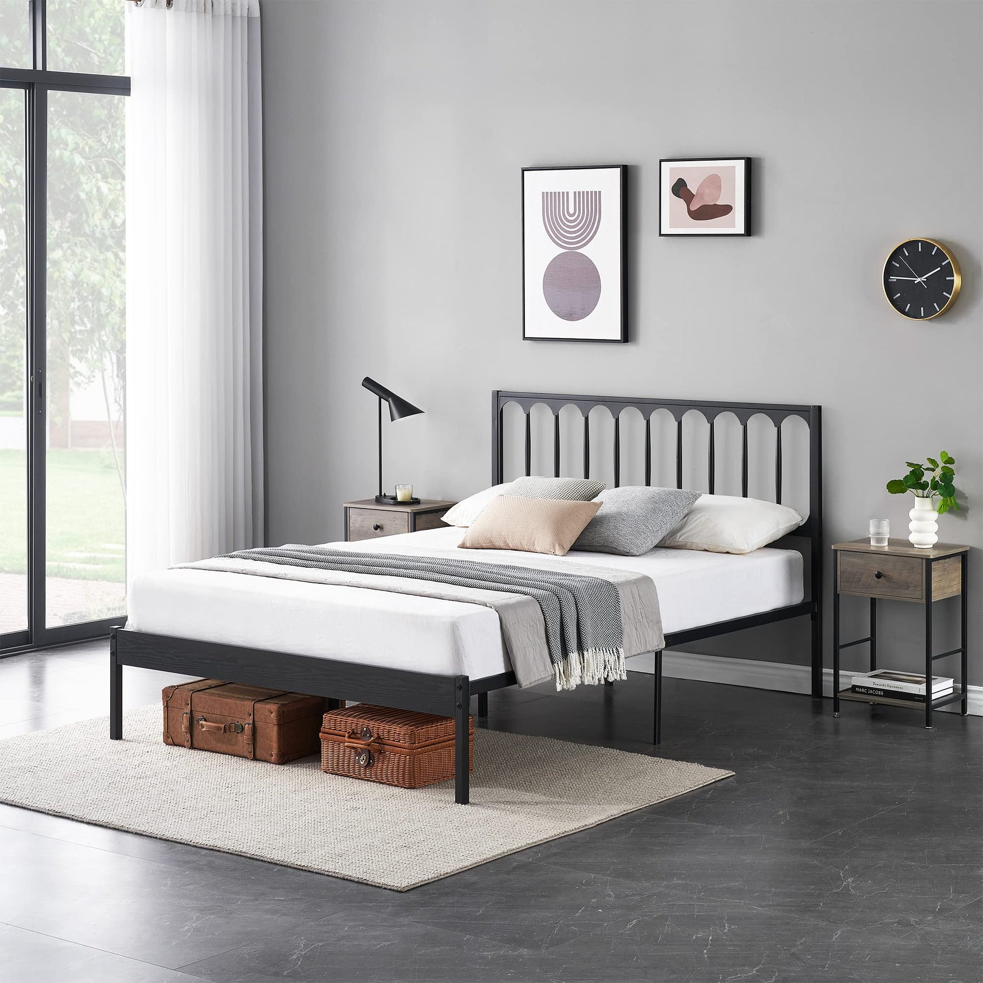 Garvee Full Size Metal Platform Bed Frame with Wave Wooden Headboard, Heavy Duty Slats, Noise-Free, Easy Assembly, Black