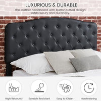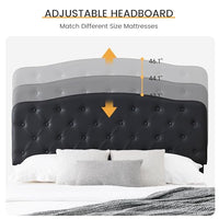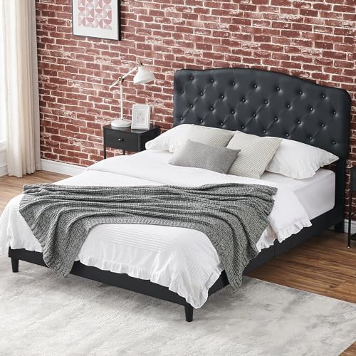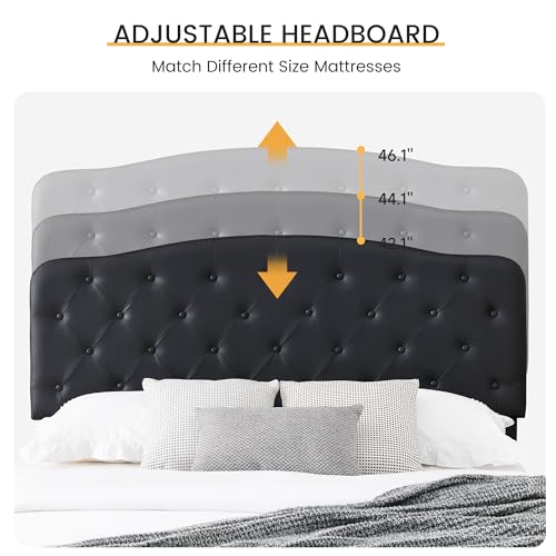 Garvee Full Size Upholstered Leather Bed Frame with Adjustable Headboard, Batten Bracing, Button Cluster, No Box Spring Needed, Noiseless, Black