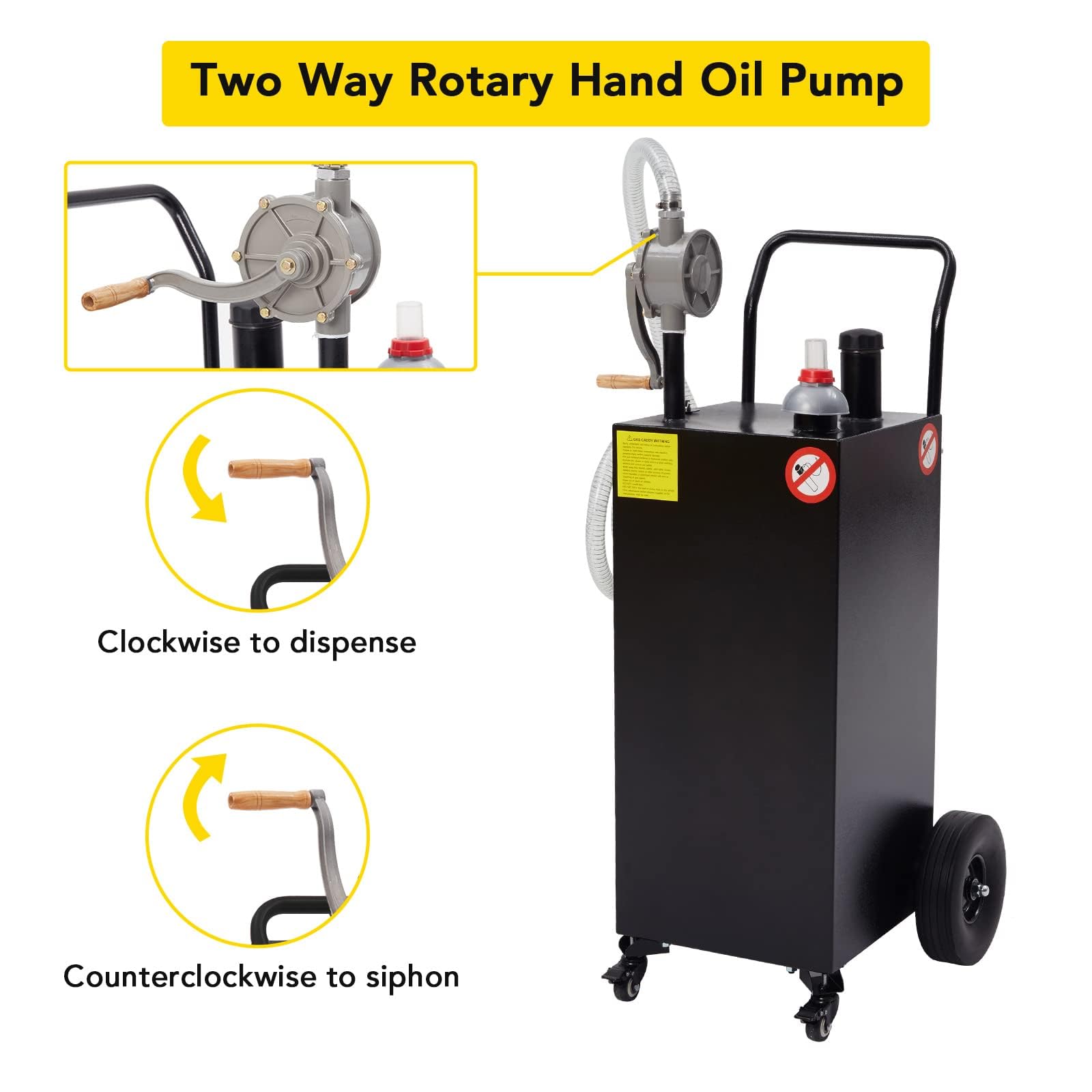 | Package Contents | 1 x 30 Gallon Gas Caddy 1 x Reversible Rotary Hand Pump 1 x Instructions Manual 1 x 8 FT Kink Proof Siphon/Discharge Hose with Nozzle |