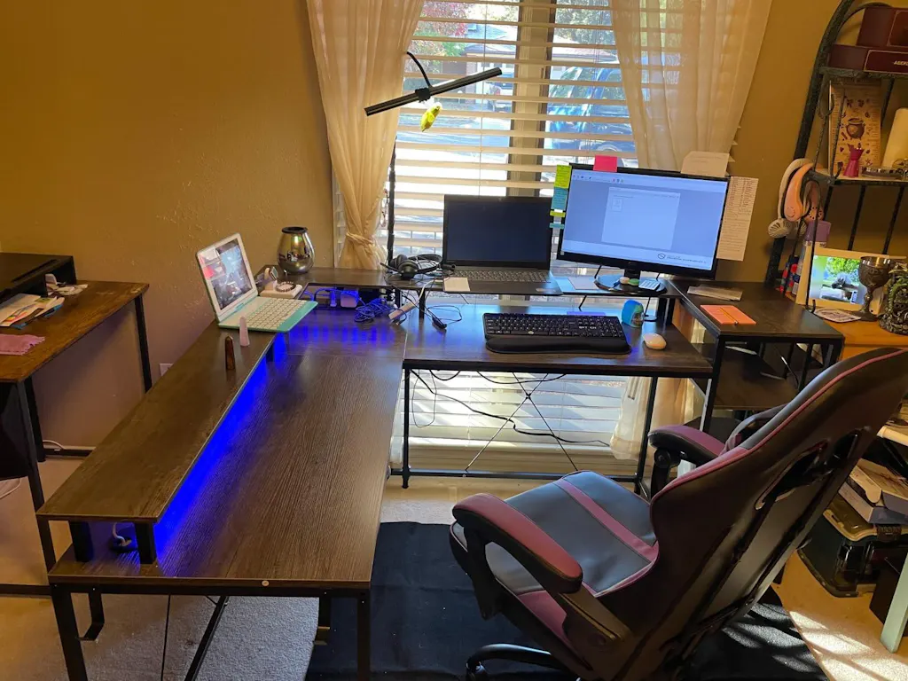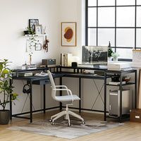 Transform your gaming setup or home office with our versatile L-shaped gaming desk. Designed for comfort, functionality, and style, it's the perfect space for gamers and professionals alike.