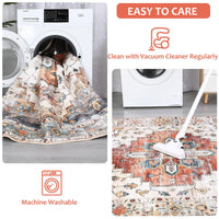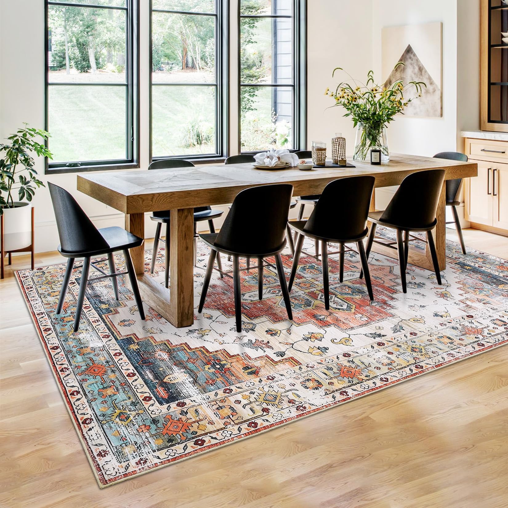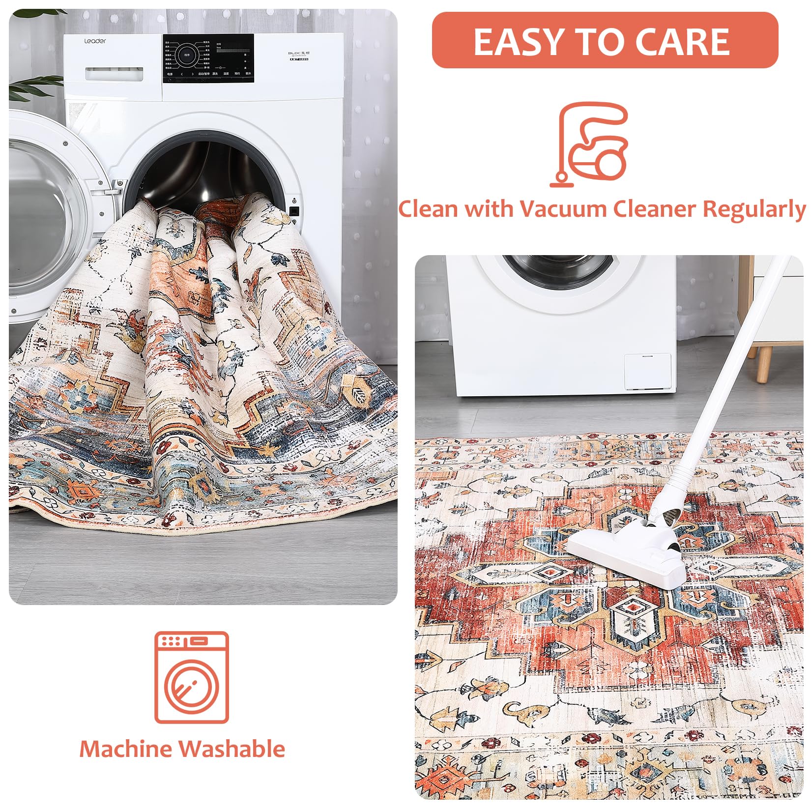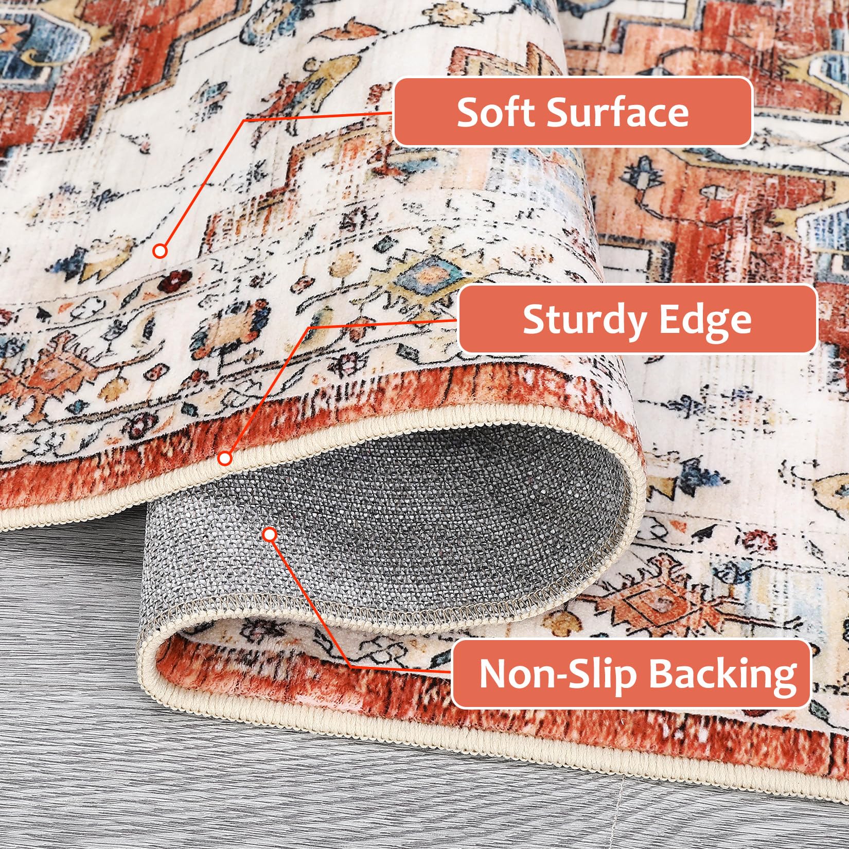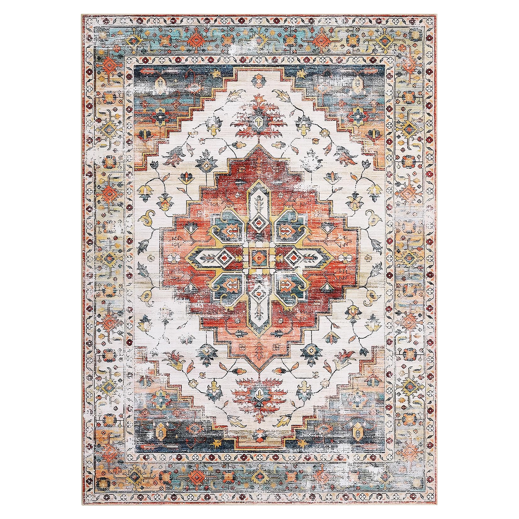 Garvee 4'x6' Vintage Area Rug, Machine Washable Living Room Rug, Non-Slip Boho Design, Tribal Medallion Print, Orange