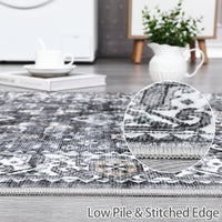 Garvee 8x10 Area Rug Vintage Distressed Machine Washable Area Rug for Living Room Bedroom Traditional Medallion Floral Non-Slip Stain Resistant Accent Rug Carpet for Floor Decoration, Grey