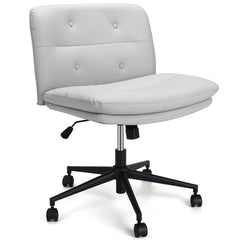 Garvee Armless Office Desk Chair with Wheels, Mid-Back Wide Seat Ergonomic Chair, 360° Swivel Vanity Chair, PU Padded, Light Grey