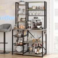 Garvee Bakers Rack with Power Outlet, Industrial Microwave Stand with 2 Wire Drawer, Large Coffee Bar Station, 7-Tier Kitchen Bakers Rack with Storage for Kitchen Spice, Pots Organizer, Gray