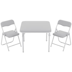 Garvee Boys and Girls Folding Table and Chairs Set of 3, Portable Table and Chair with Pu Soft Cushion, No Installation Required, Suitable for Eating, Reading and Playing, Grey