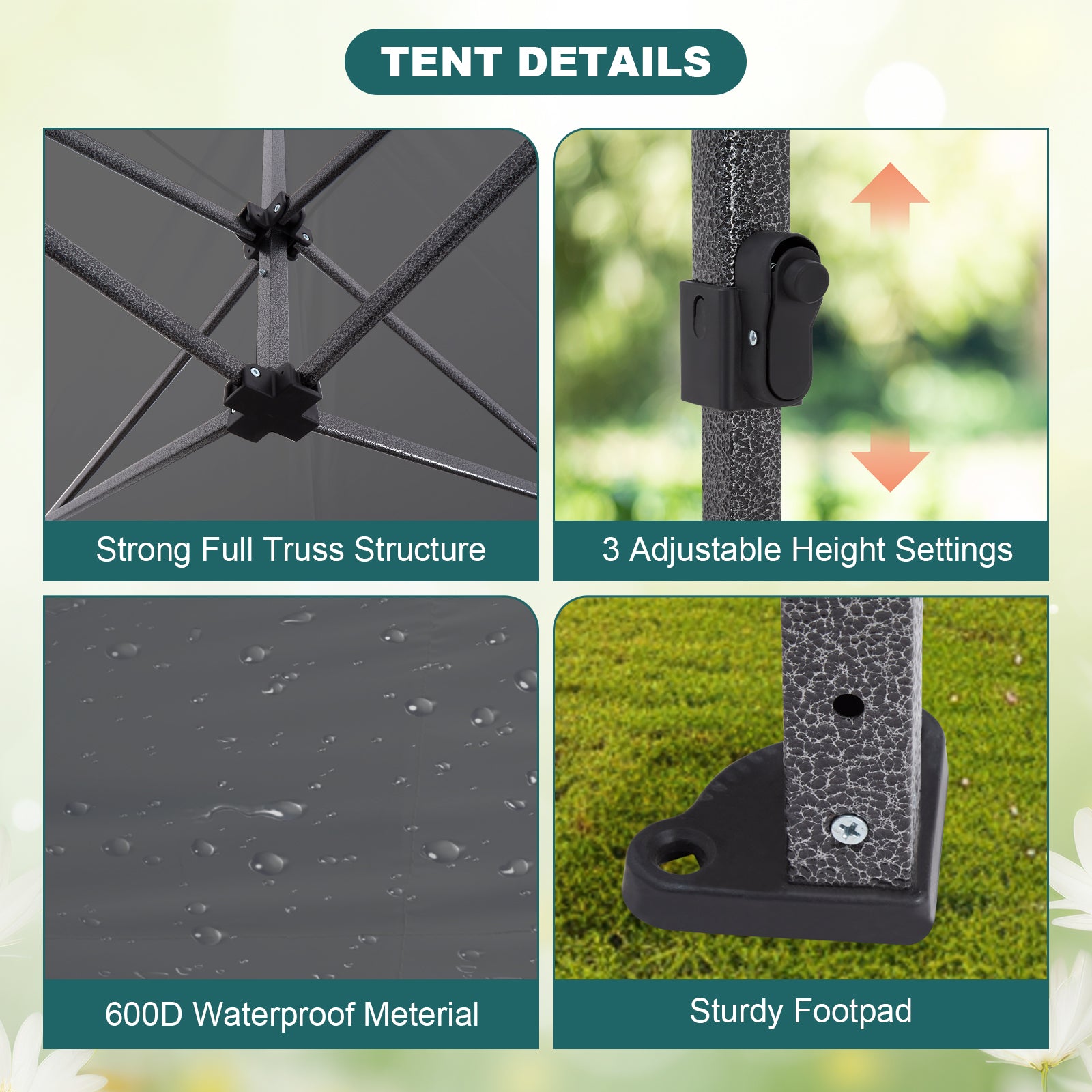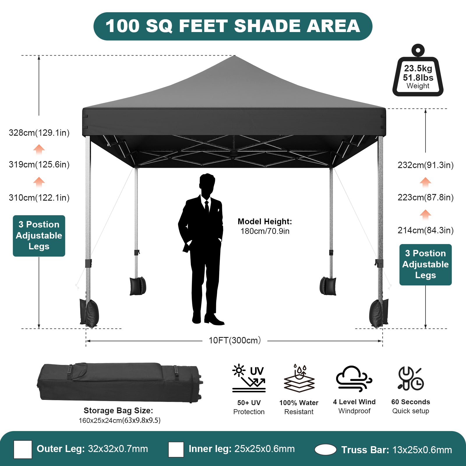 - Spacious Design: 10x10 feet of coverage, perfect for outdoor events and activities.