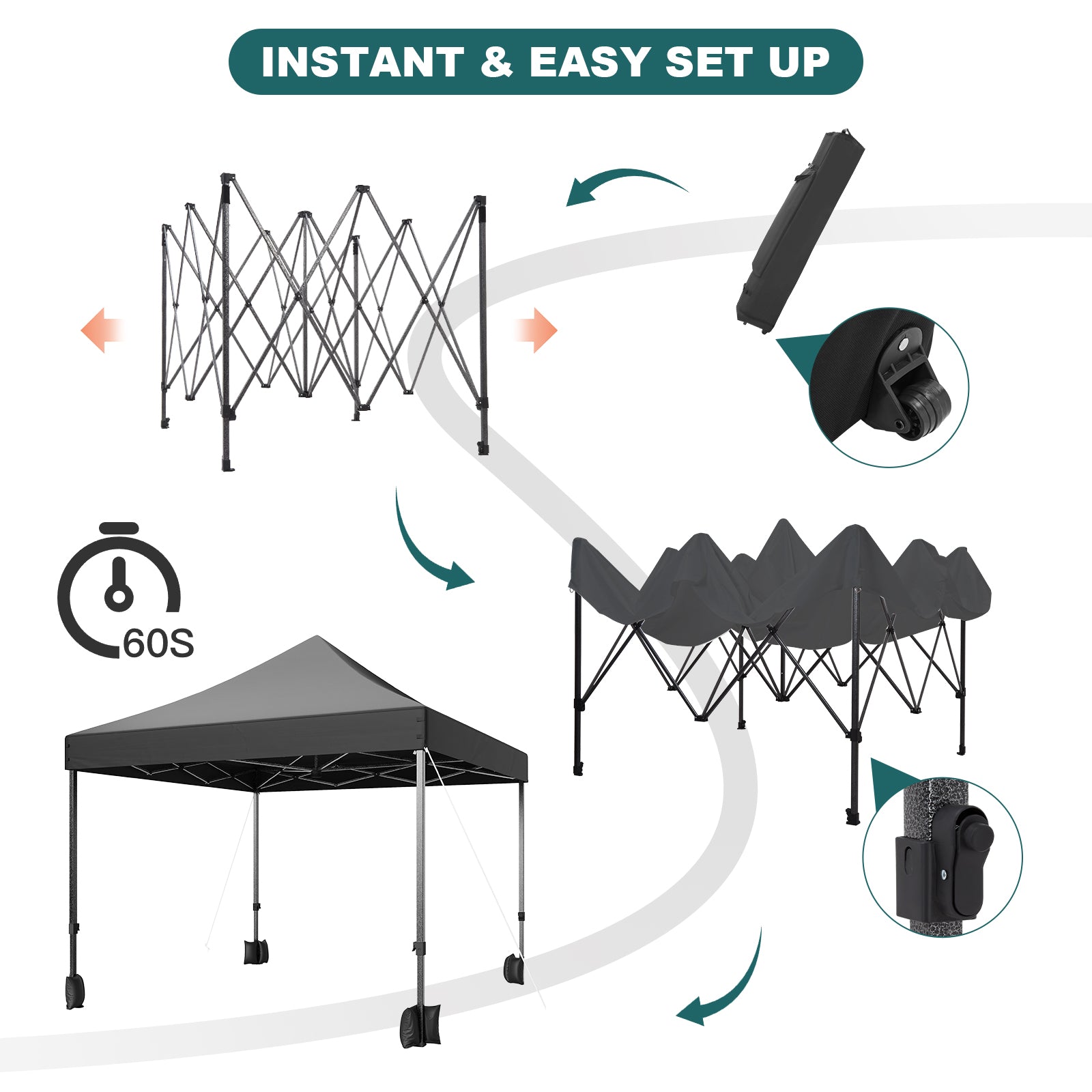 - Easy to set up and take down, saving you time and effort