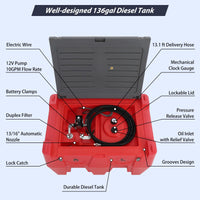 Garvee Portable Diesel Tank, 128 Gallon Fuel Tank with 12V Electric Fuel Transfer Pump, 10 GPM Diesel Transfer Tank with Auto Fueling Nozzle & 360° Swivel Connector with 13.1ft Hose - Red