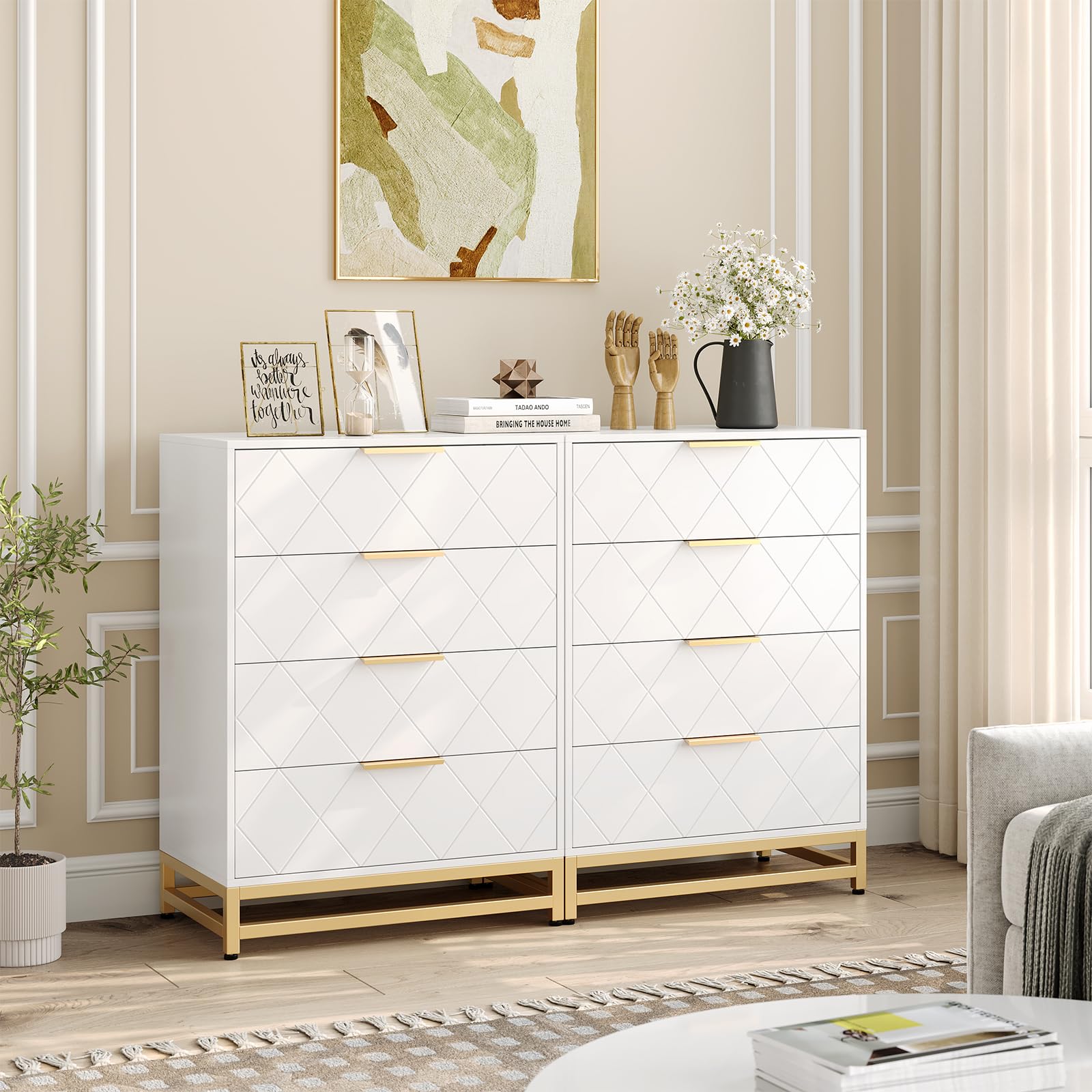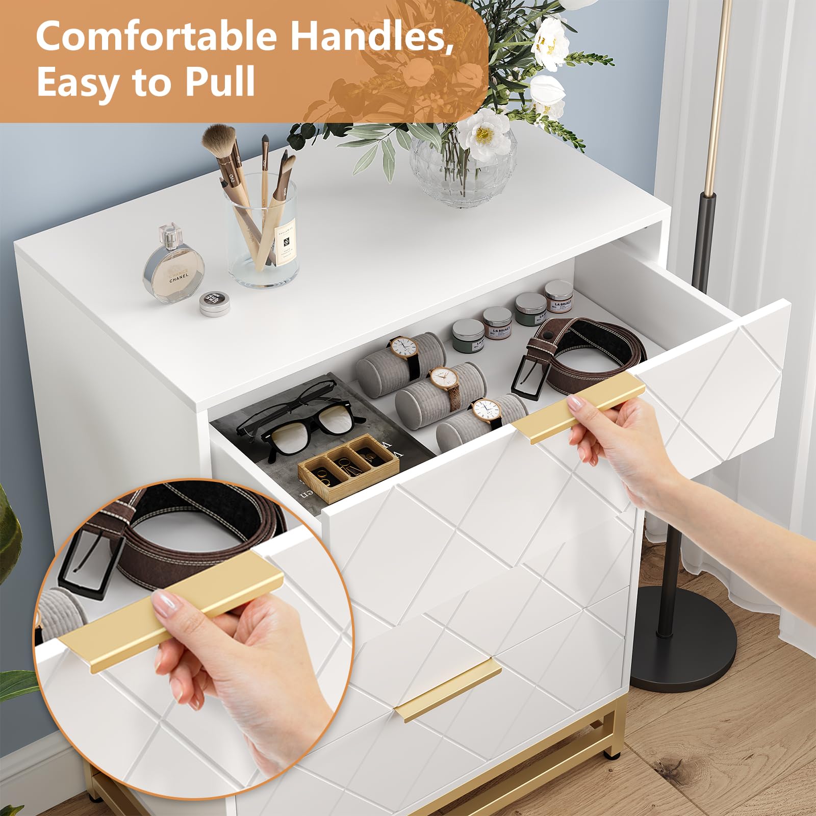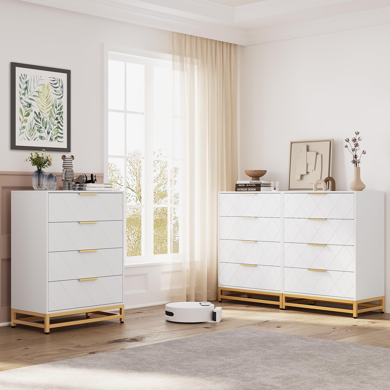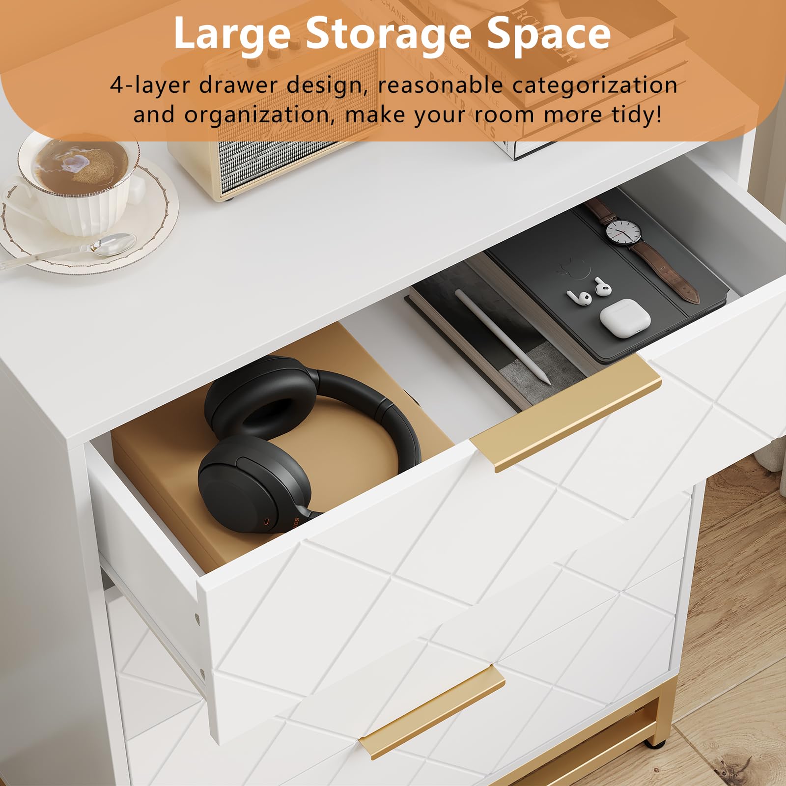 Garvee Dresser for Bedroom with 4 Drawer, TV Stand Dressers Chest of Drawers for Living Room Hallway Entryway, MDF Board, White