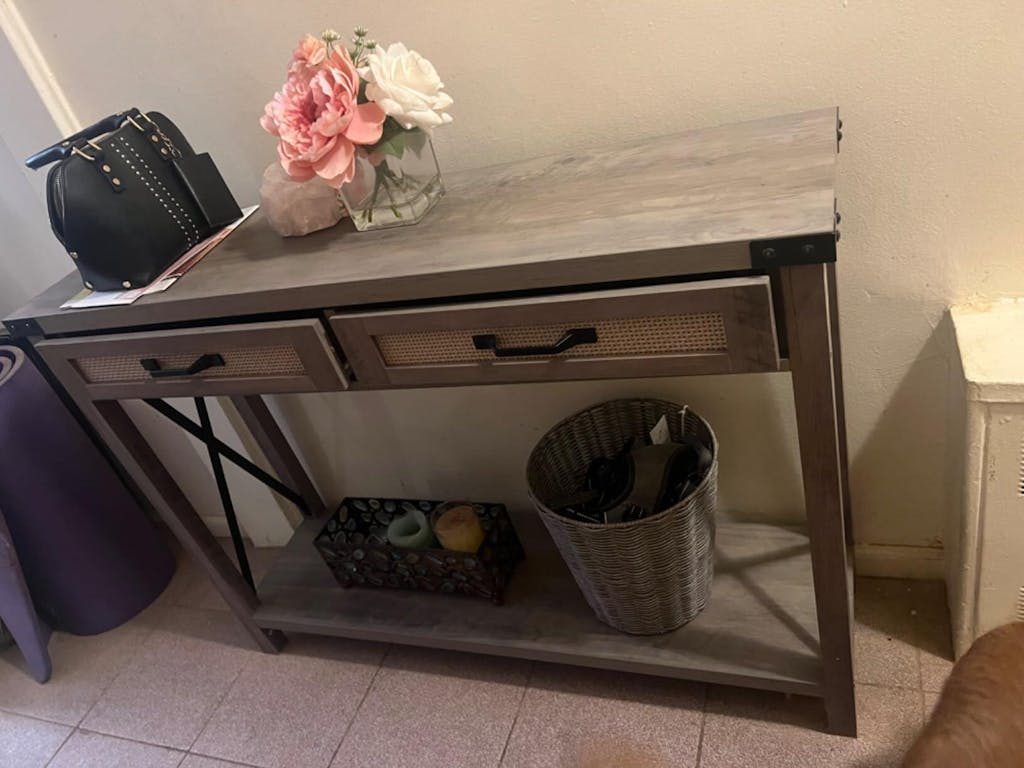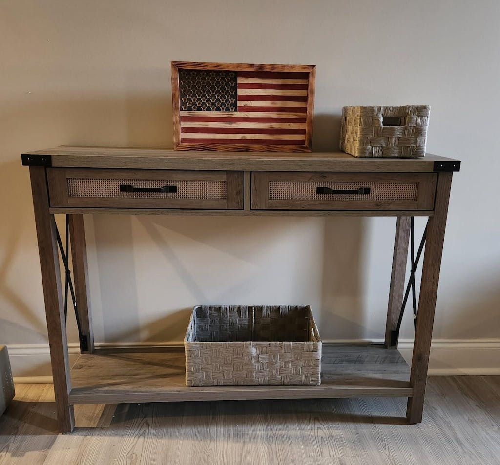 With its rustic burlywood finish, rattan drawer design, and practical storage options, the GARVEE Farmhouse Console Table combines charming farmhouse aesthetics with modern functionality for your home.