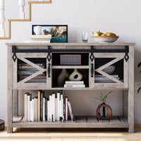 Garvee Farmhouse Entryway Table with Sliding Barn Doors, Sofa Table with Storage and Open Shelf, Console Tables for Entryway, Hallway, Washed Grey