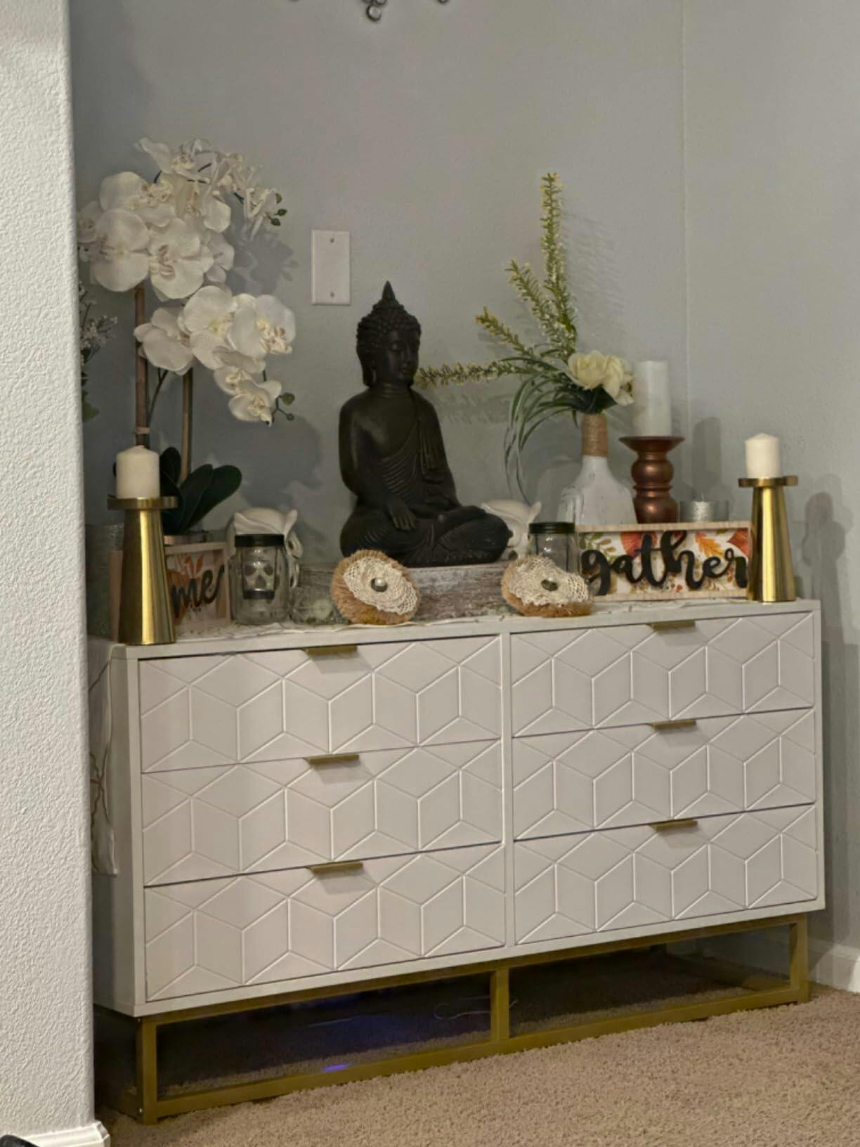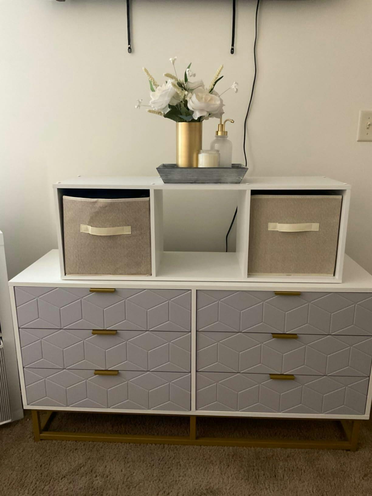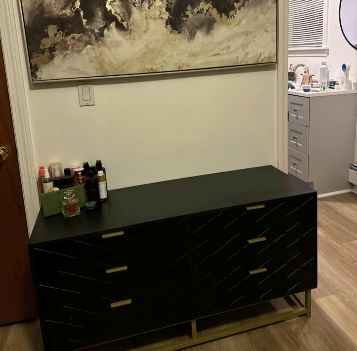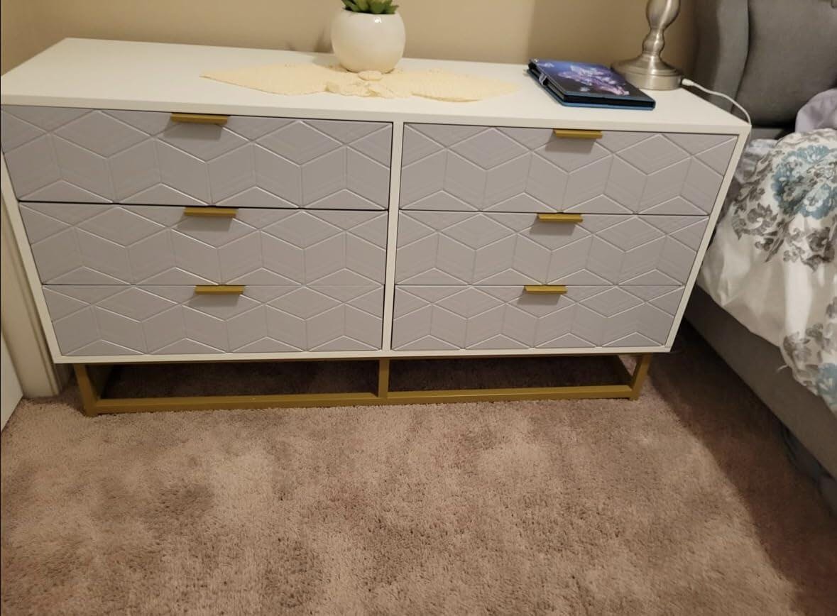 - Elegant & Stylish: Delicate gold metal legs and handles combined with modern engraving patterns add appealing detail to this drawer dresser, and easily match any decoration style to add unique charm to your space.