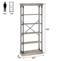 Garvee 6 Tier Industrial Bookshelf Wood Storage Open Rack Metal Frame Rustic Tall Standing Bookcase for Bedroom, Living Room, Home Office