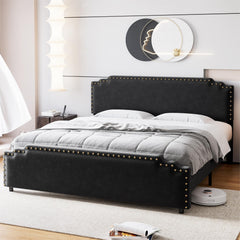 - Elegantly Designed Velvet: Add a touch of elegance and modern charm to your bedroom with our velvet-upholstered bed frame. The soft velvet upholstery and rivet decor create a stylish and sophisticated look, complemented by the soft velvet upholstered headboard design.