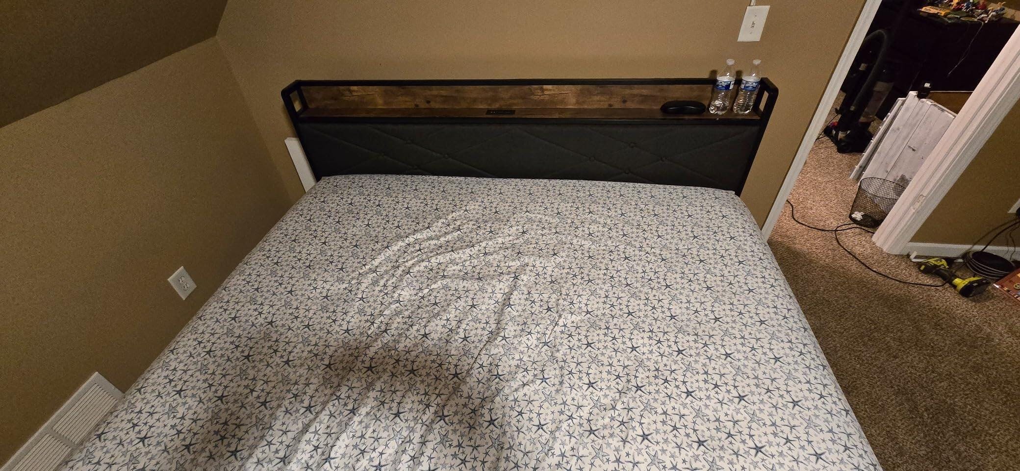 - Storage Shelf and Charging Port - More Convenience: This king size bed frame with headboard comes with storage shelves and charging ports for storing remotes, cell phones, glasses or other bedroom items for extra convenience.