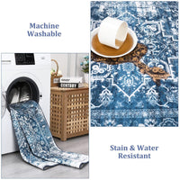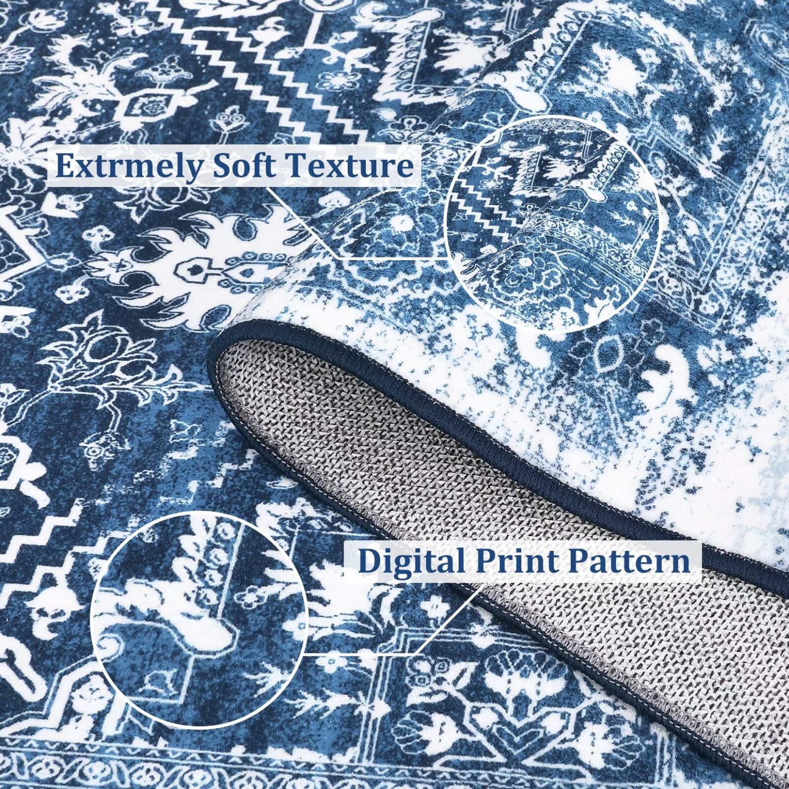 Garvee Large Rug 8x10 Vintage Area Rug Non-Slip Distressed Area Rug Machine Washable Indoor Floor Carpet Low Pile Rug Foldable Accent Rug for Bedroom Nursery, Navy