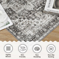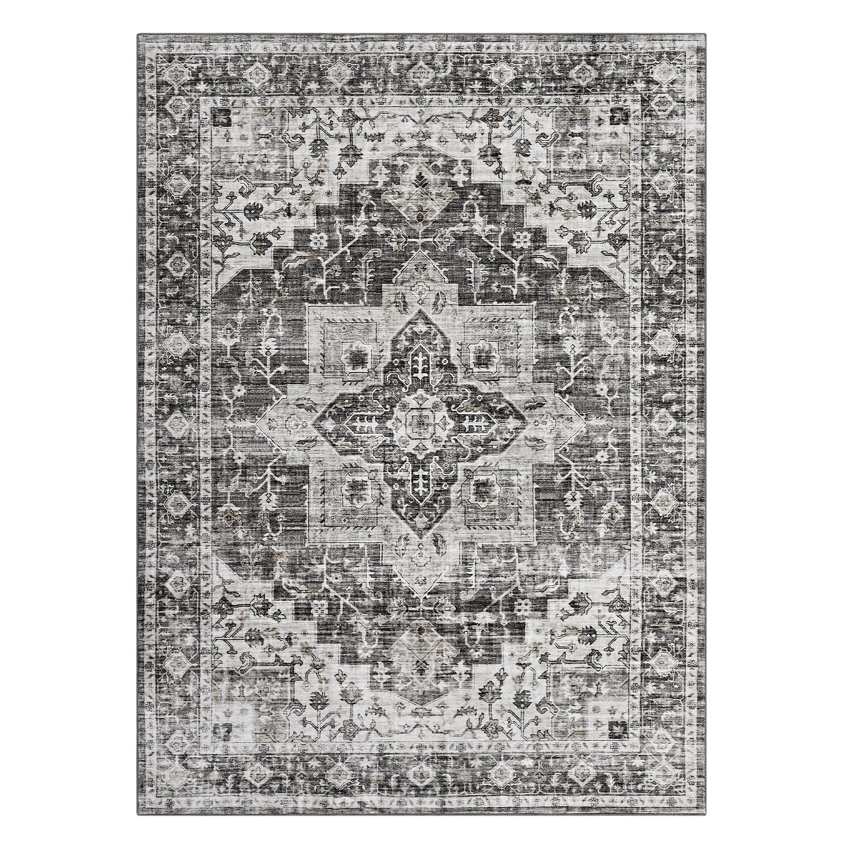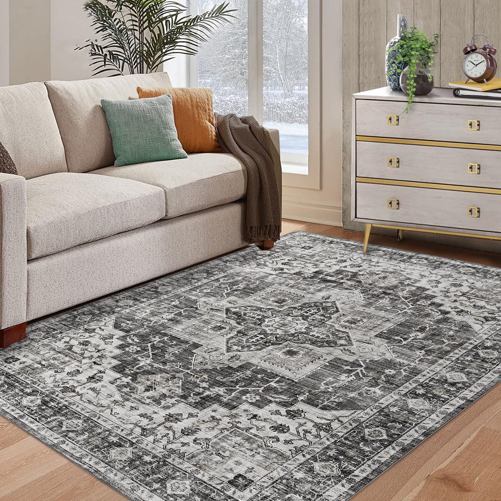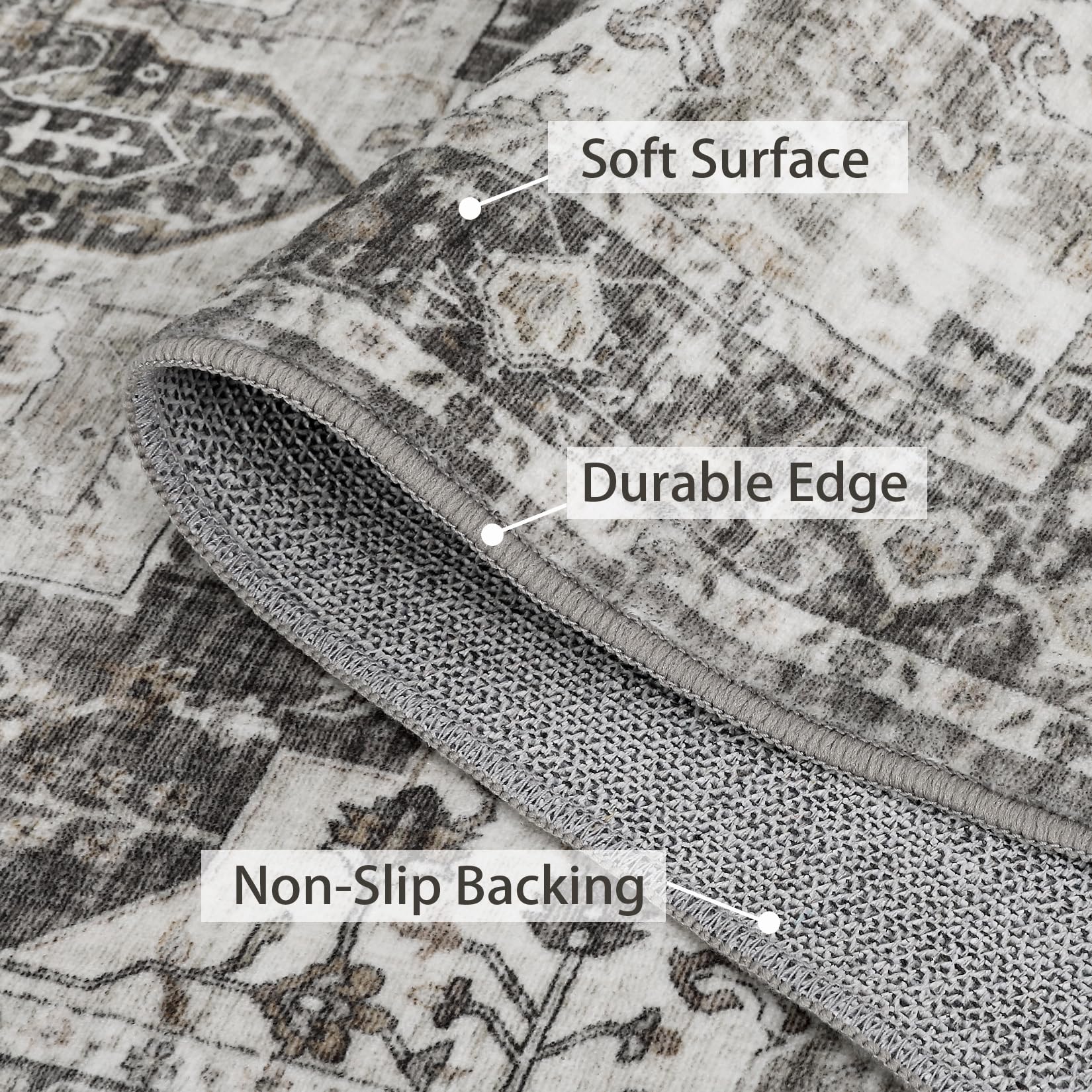 Garvee Machine Washable Area Rug 5x7 Vintage Distressed Area Rug for Living Room Bedroom Traditional Medallion Floral Non-Slip Stain Resistant Accent Rug Carpet for Home Decoration, Grey