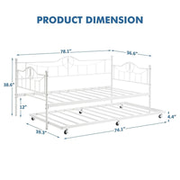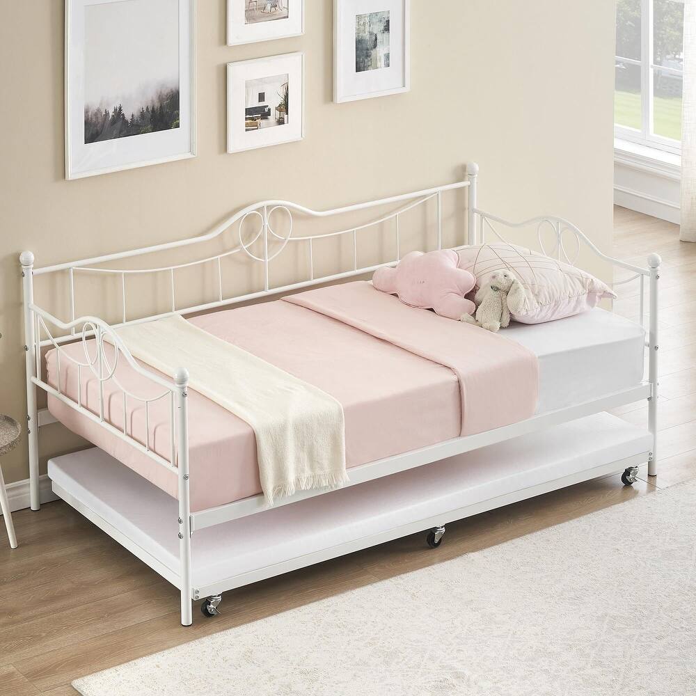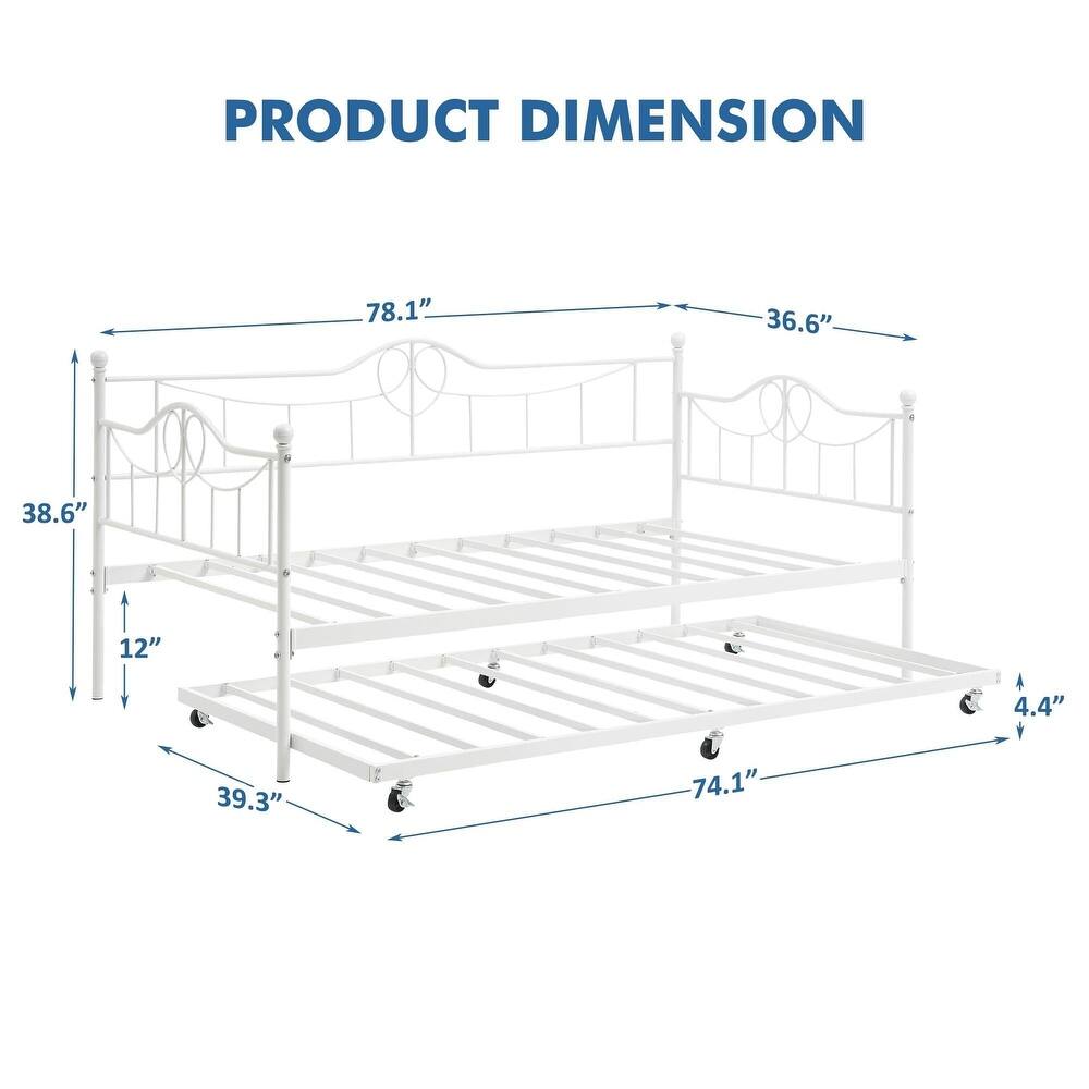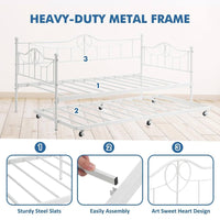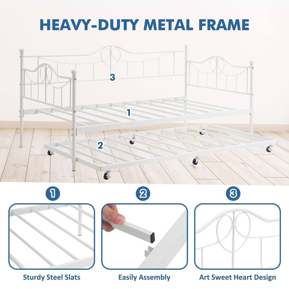 Garvee Twin Daybed with Trundle Bed,Metal Twin Day Bed Twin Size With Steel Slat Support, Sofa Bed for Living Room and Guest Room - White