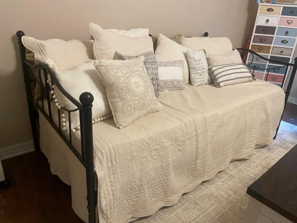 Garvee Twin Daybed with Trundle Bed,Metal Twin Day Bed Twin Size With Steel Slat Support, Sofa Bed for Living Room and Guest Room - White