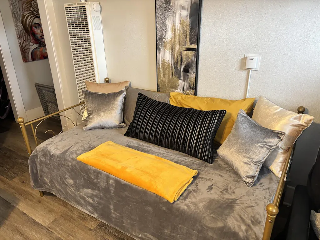 Elevate your living space with our stunning Modern Sofa Bed. Featuring unique heart-shaped headboards and stylish metal accents, this versatile piece offers both luxurious comfort and eye-catching design. Perfect for small apartments, guest rooms, or any space where flexibility is key.