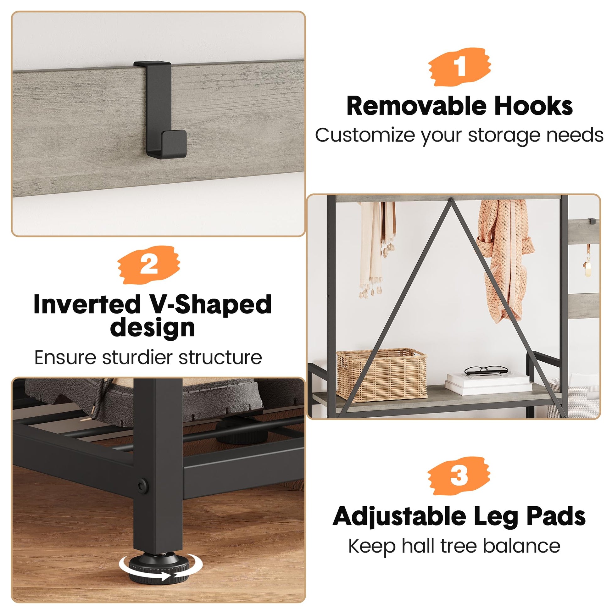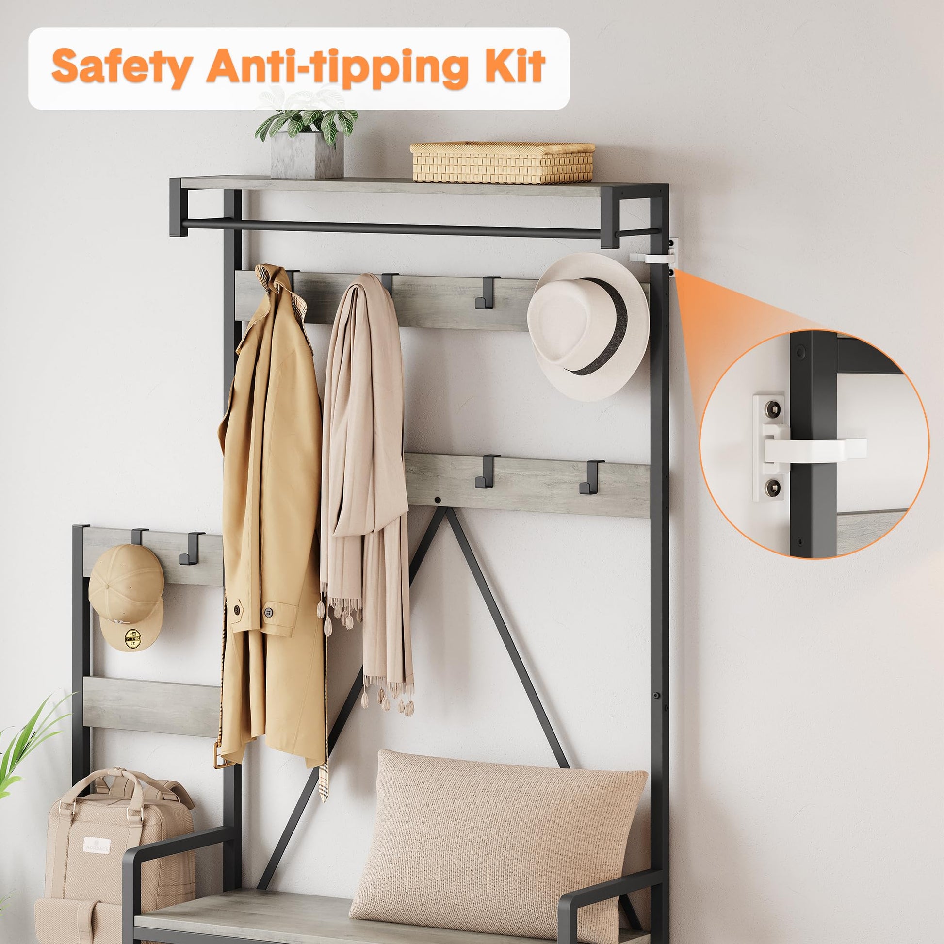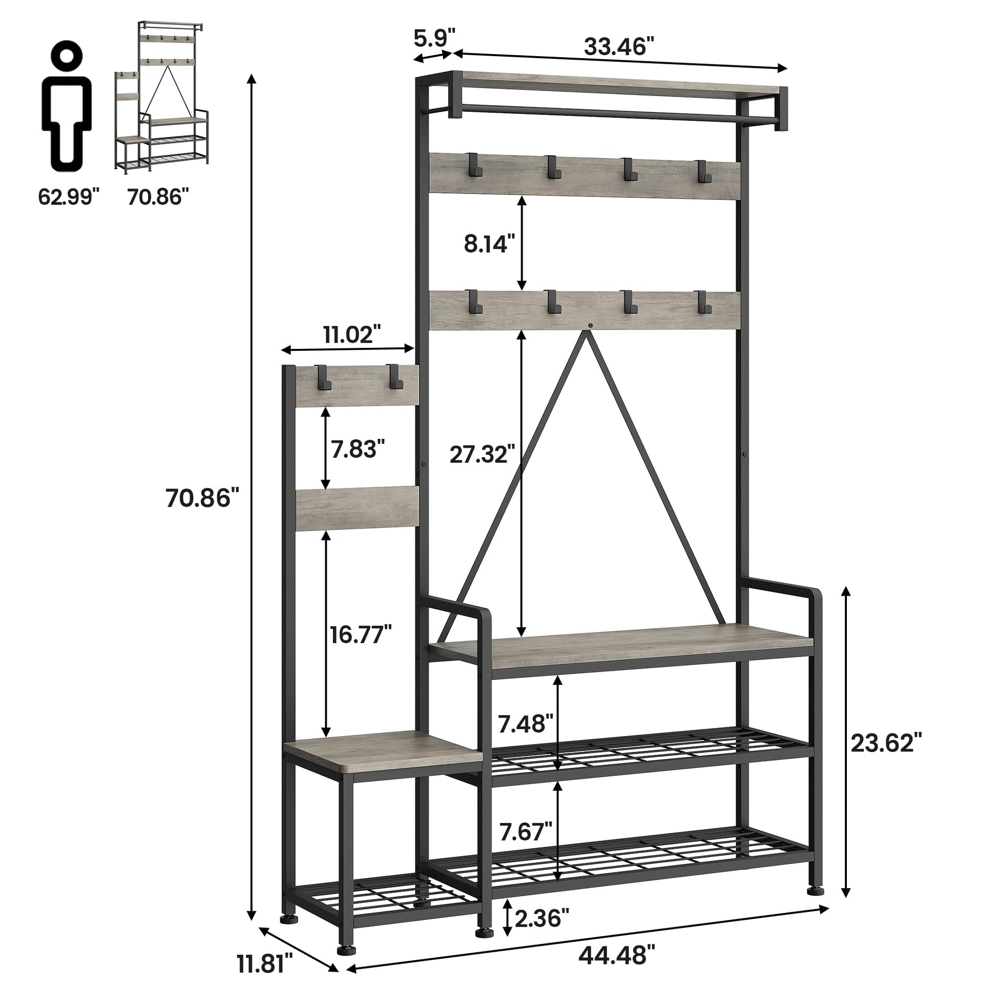 With its versatile design, this hall tree fits perfectly in hallways, entryways, living rooms, bedrooms, and more. The easy assembly process ensures you'll have your new organizer set up in no time.