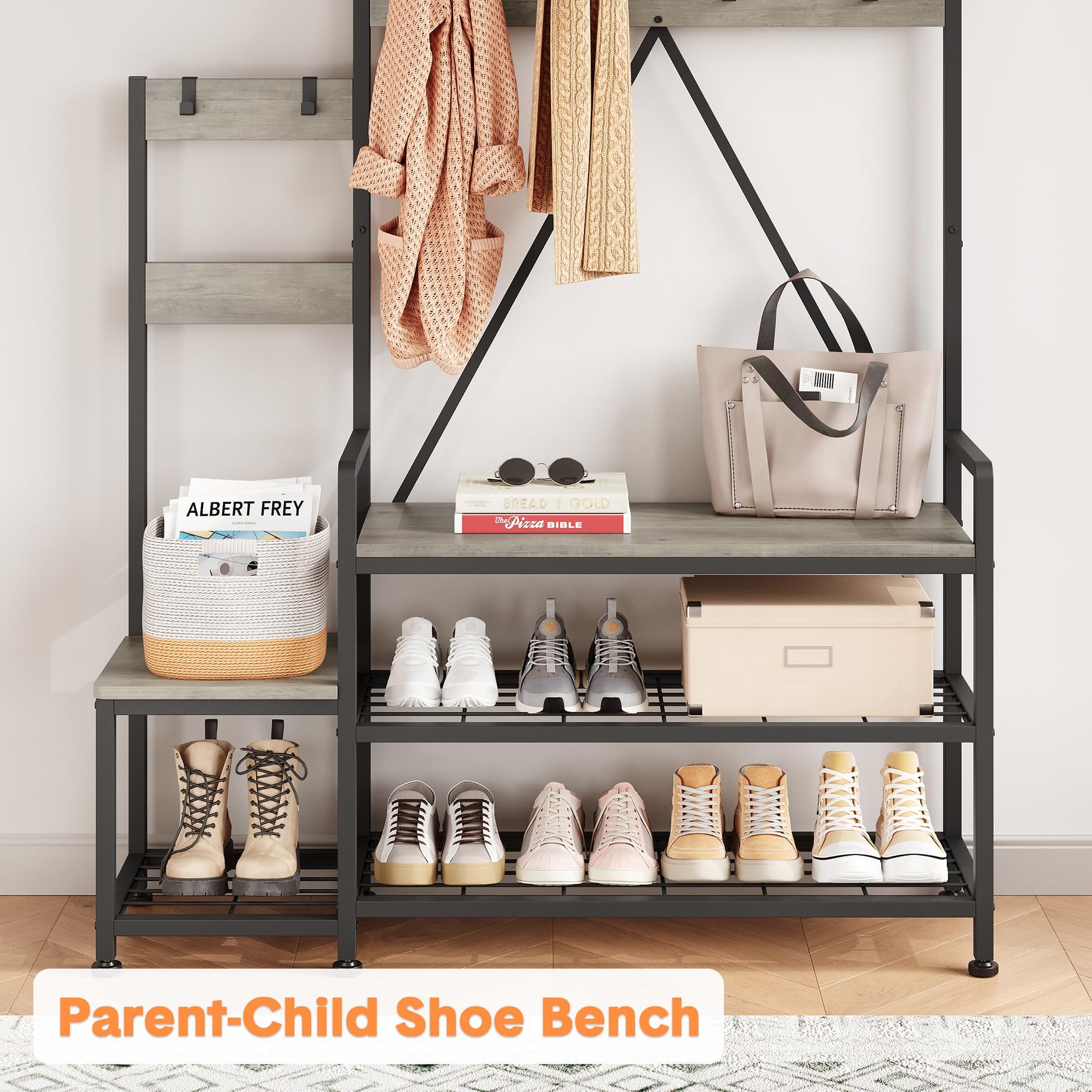 GARVEE Parent-Child Coat Rack Shoe Bench: The Ultimate Entryway Organizer
