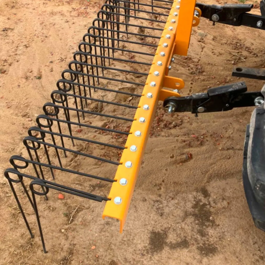 Transform your landscaping efficiency with our heavy-duty 60 Inch Pine Straw Rake, perfect for tractors with Cat 0 and Cat 1 3-point hitches.