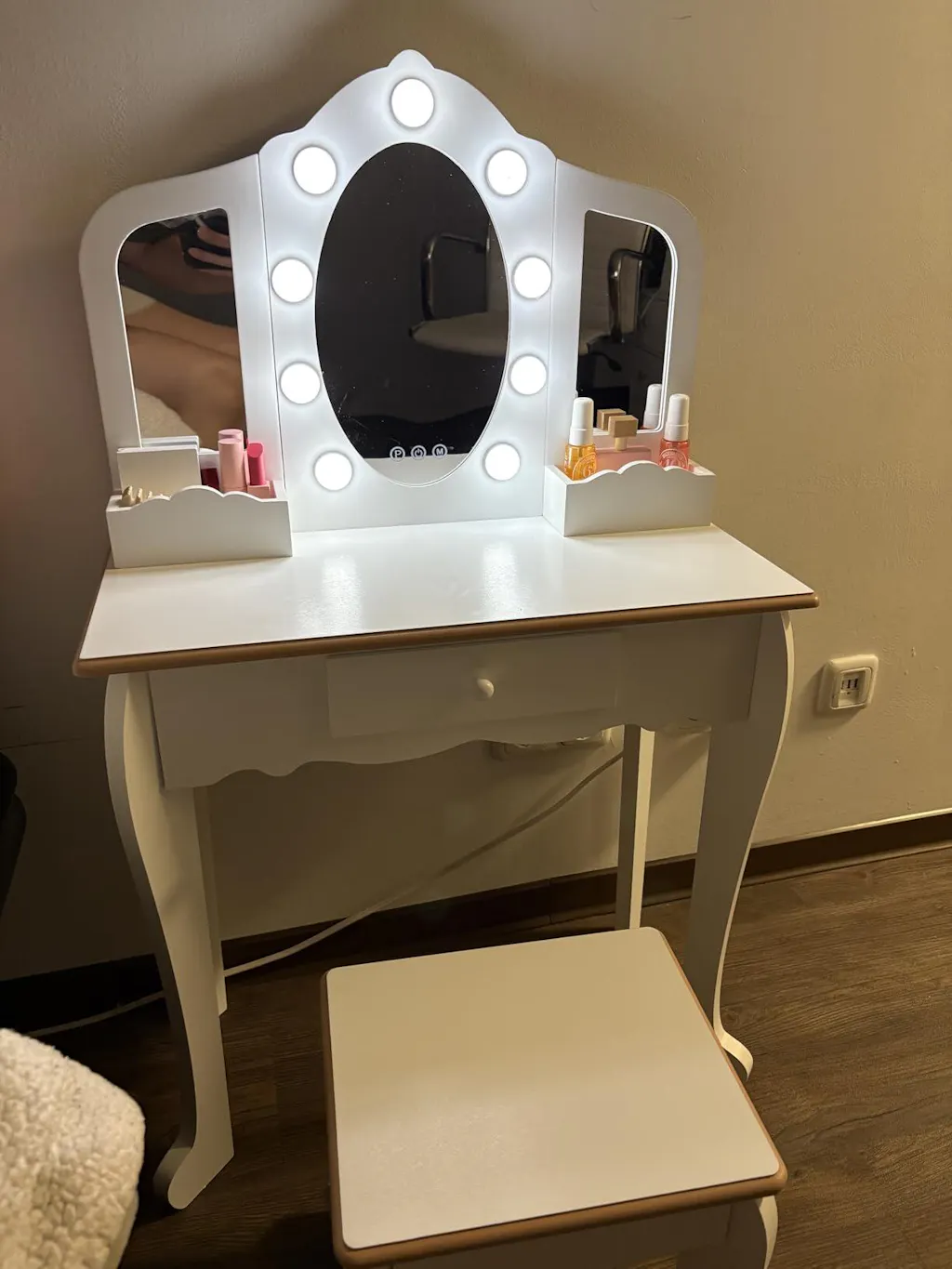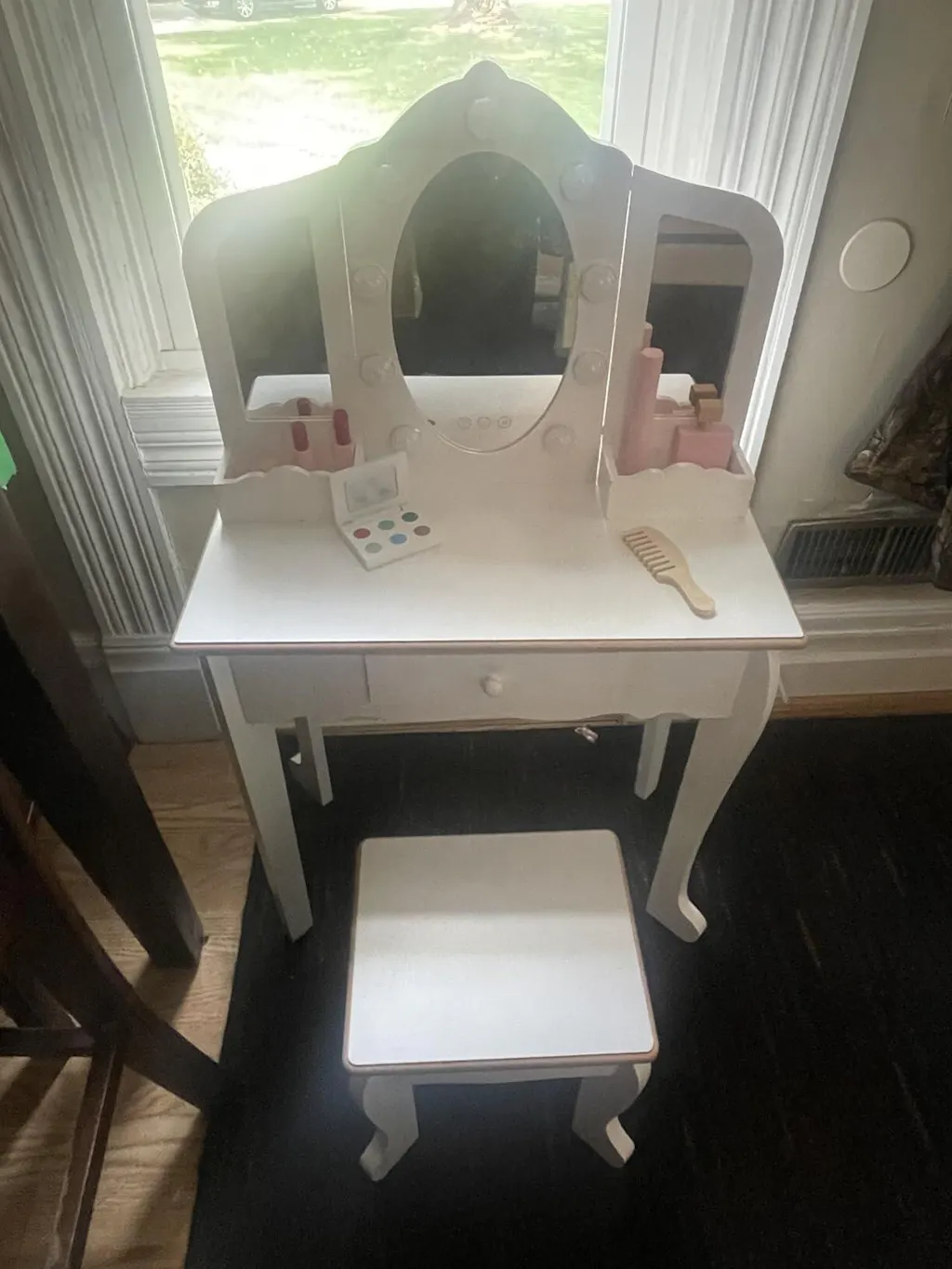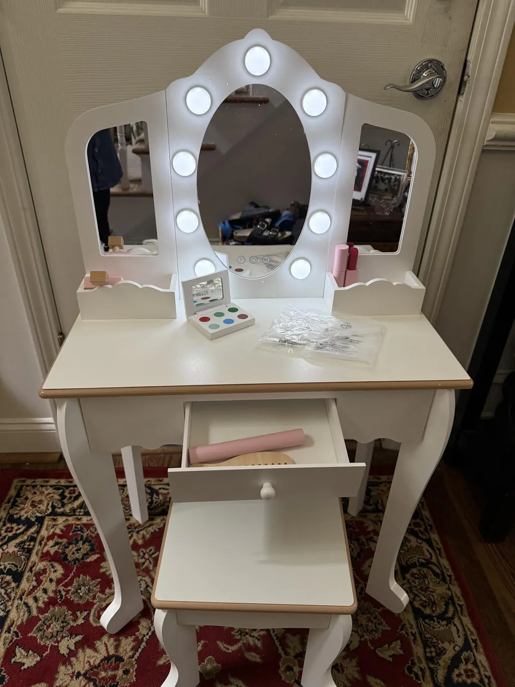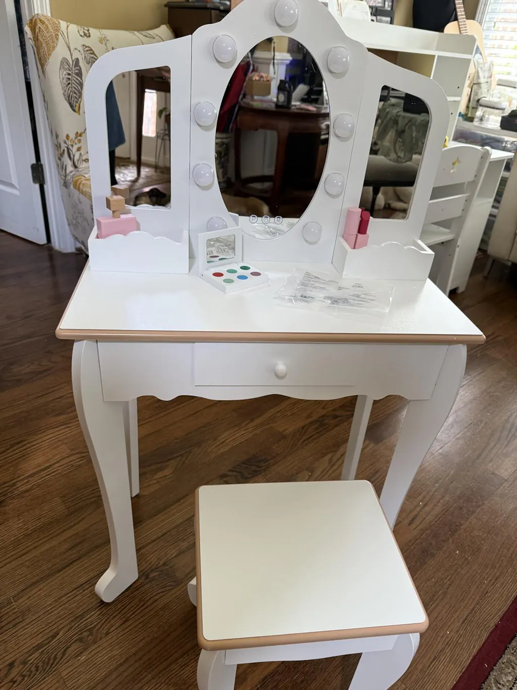 - Perfectly Sized for Ages 3-10: Vanity (37"H x 23.2"L) and stool (12"H) offer a comfortable, child-friendly fit.