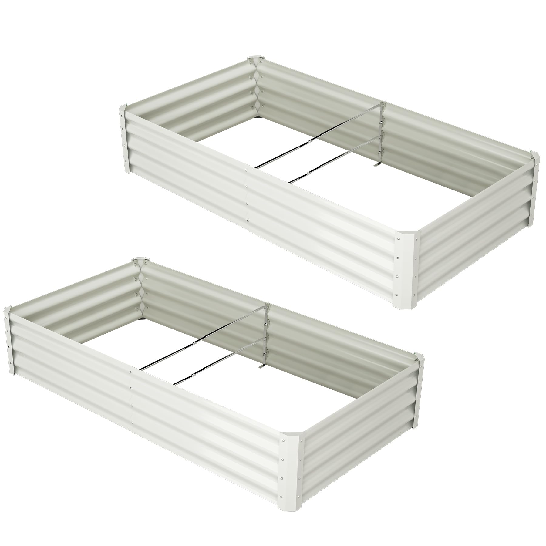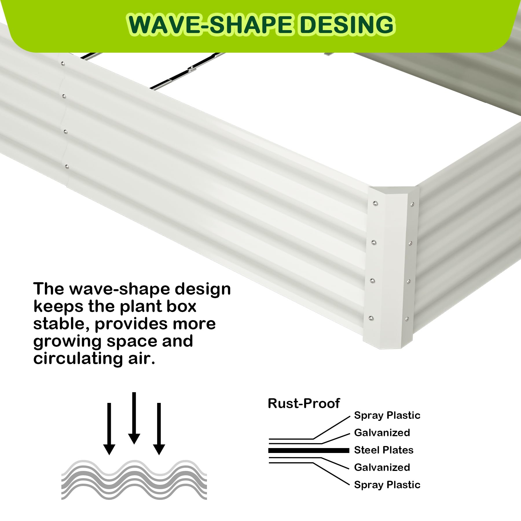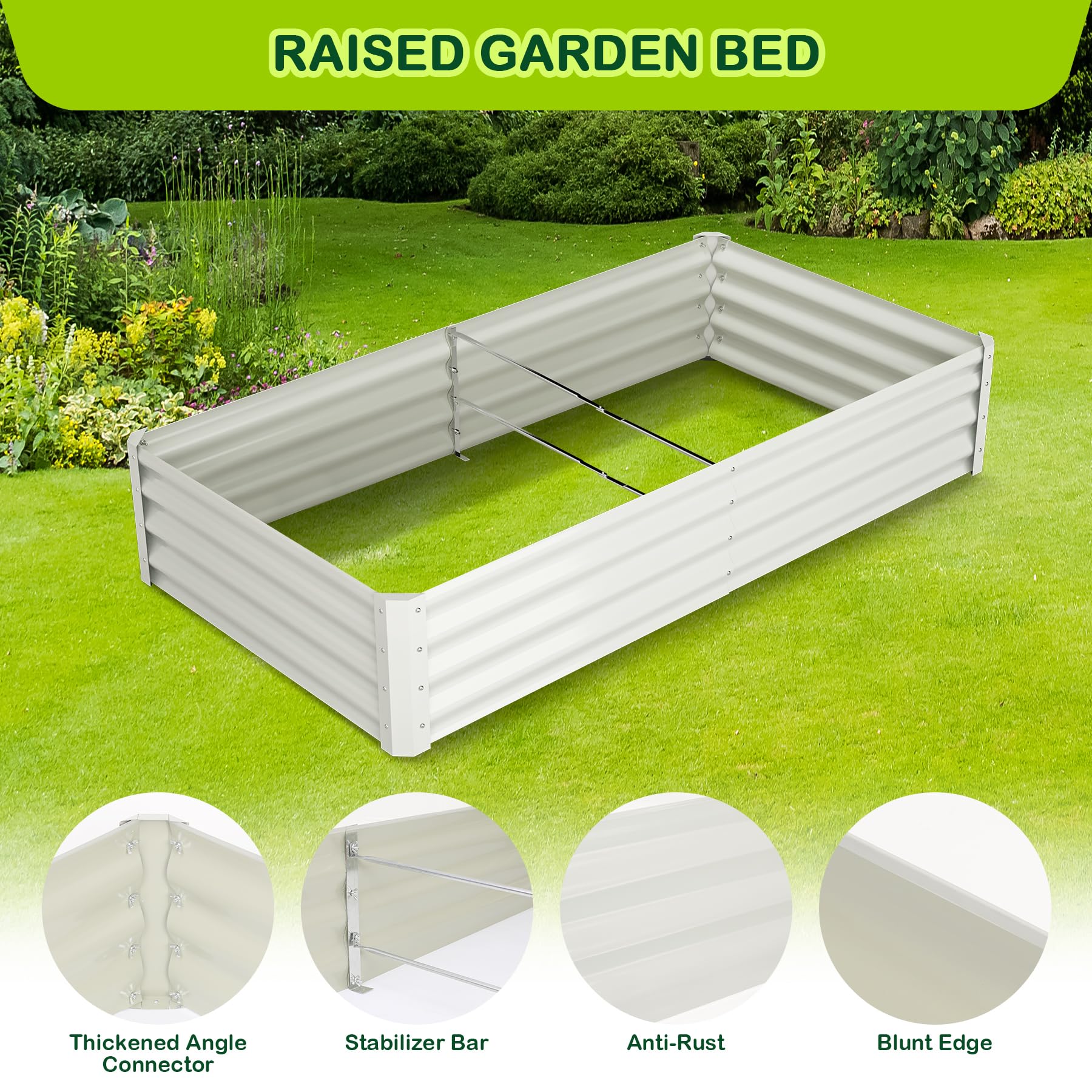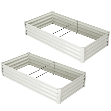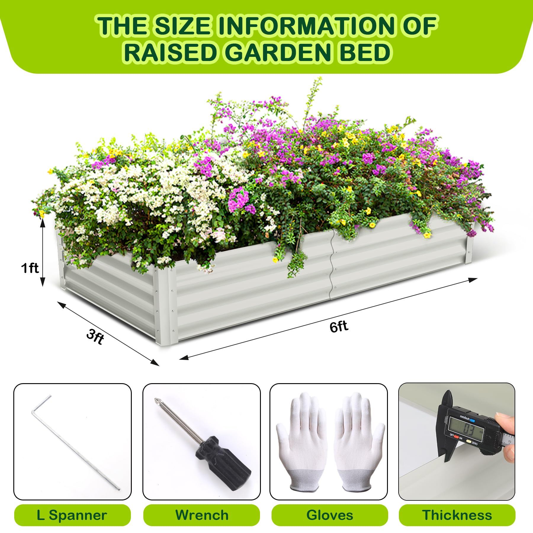 Garvee 2 Pcs 6' X 3' X 1' Raised Garden Bed, Galvanized Planter, Upgraded Quality, Open Base, Safety Edge, Gloves, Outdoor Gardening, White