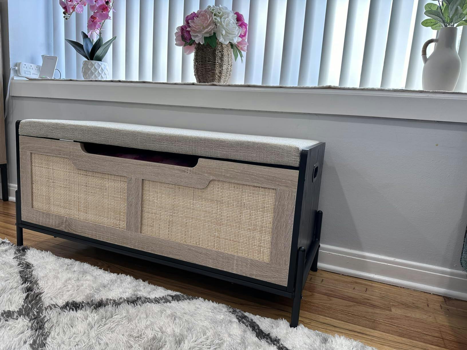 This storage bench isn't just furniture - it's a storage powerhouse. With its generous capacity and sturdy construction supporting up to 220 lbs, it's perfect for organizing shoes, blankets, toys, and more. The stylish rattan design ensures it looks great in any setting.