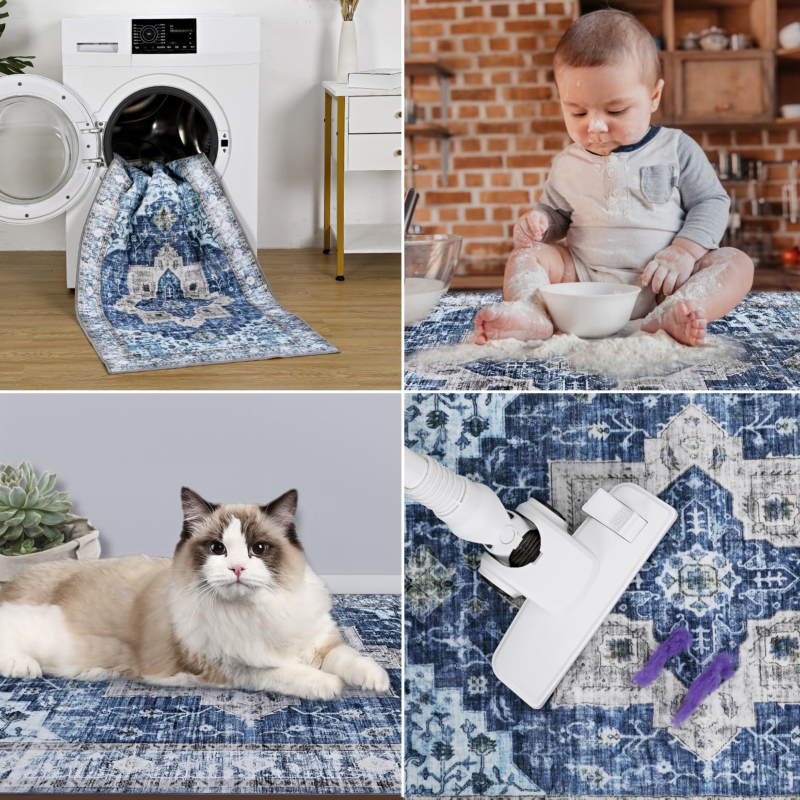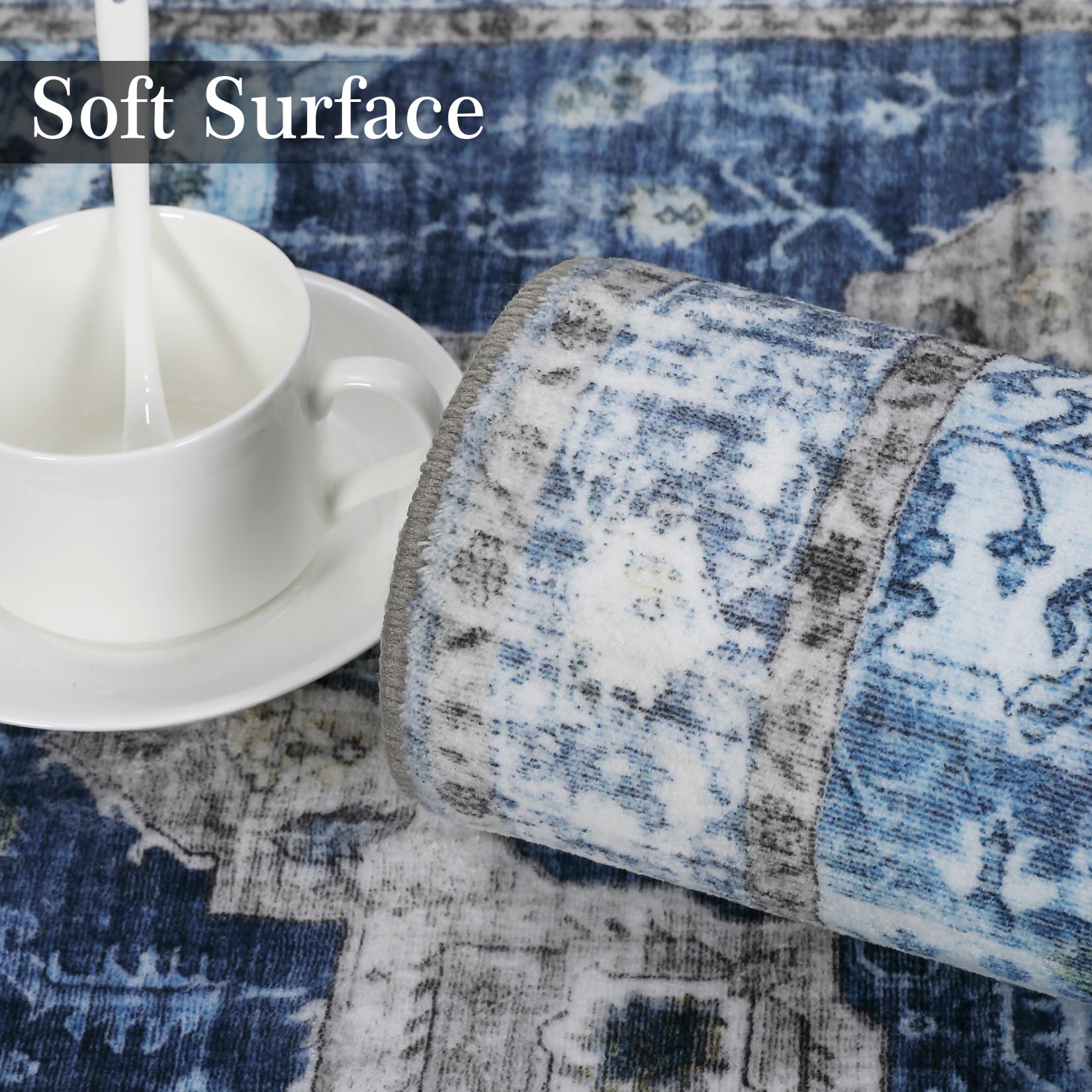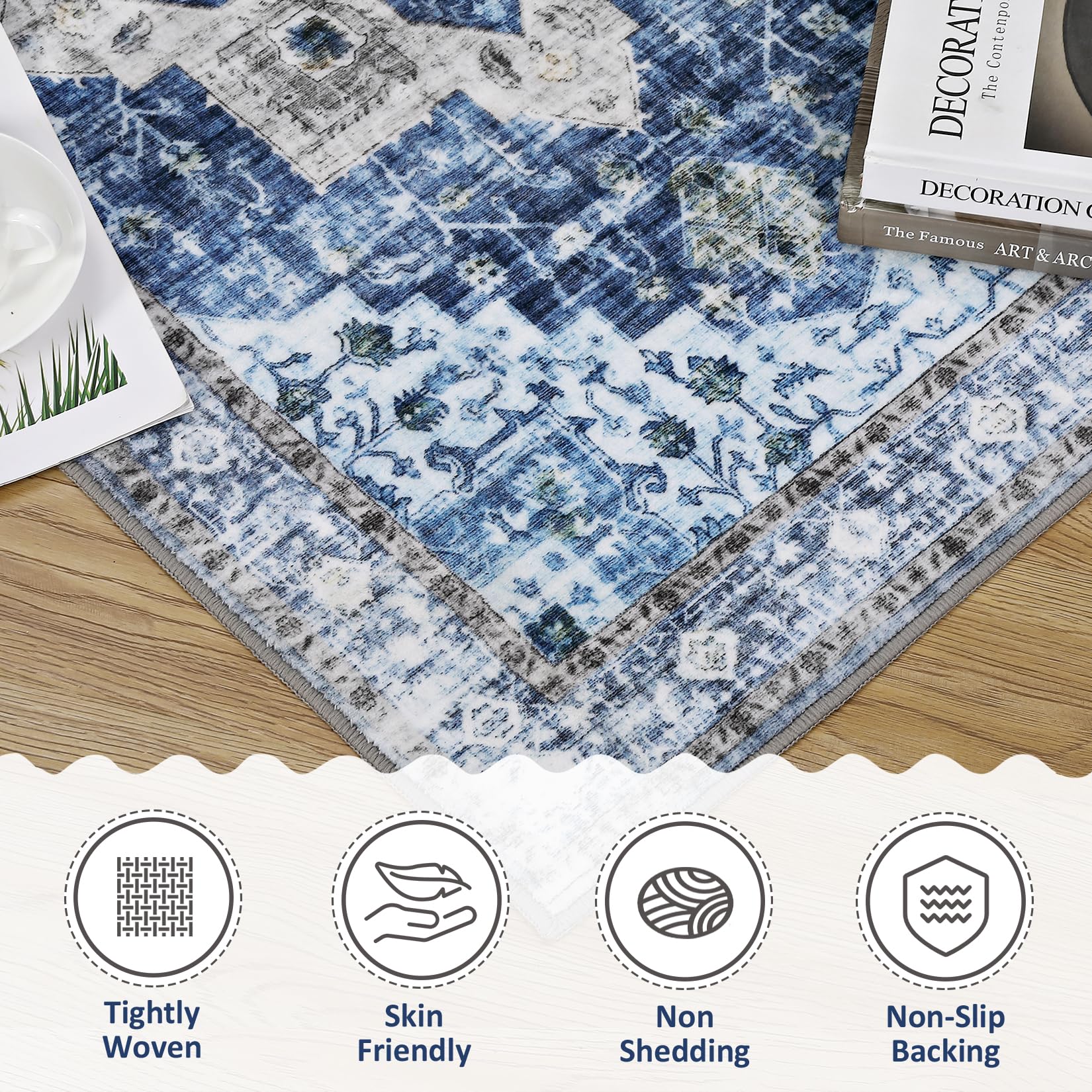 Garvee Runner Rug 2x6 Feet Washable Vintage Medallion Hallway Runner, Non-Slip Stain Resistant Area Rug Traditional Distressed Kitchen Mat Entryway Carpet Runner for Doorway Bedside, Blue