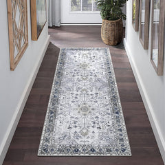 Garvee Runner Rug 2x6 Feet Washable Vintage Medallion Hallway Runner, Non-Slip Stain Resistant Area Rug Traditional Distressed Kitchen Mat Entryway Carpet Runner for Doorway Bedside, Blue
