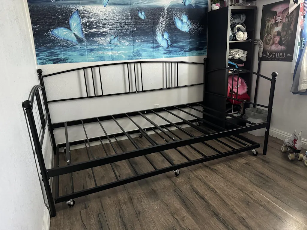 - 【Heavy Duty Metal Bed Frame】 The daybed frame features a sturdy metal frame and slats, providing good weight-bearing capacity and stability. The maximum weight capacity of each single bed is 350 pounds, suitable for adults, teenagers, and children. The powder-coated metal is corrosion-resistant and durable, while the 360° swivel wheels ensure smooth and flexible movement.
