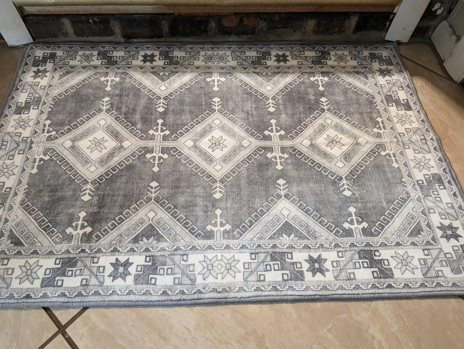 Garvee Washable Runner Rug 2x6 Bohemian Farmhouse Rustic Geometric Hallway Rug Low Pile Moroccan Diamond Indoor Carpet for Bathroom Kitchen Bedroom Bedside, Grey