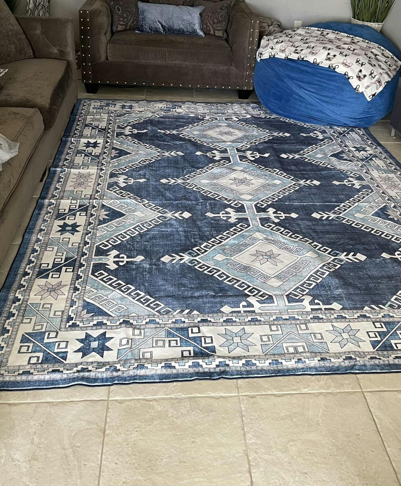 - 【Warm Notic】Area rug may have temporary creases after you receive it. Please give it some time to flatten itself. There may have slightly color difference between the real goods and pictures due to the light effect. Vacuum regularly to prevent grit from breaking down the fibers. Use a broom to sweep edges clean. Spot clean stains immediately with a mild detergent or carpet cleaning product, then rinse thoroughly and blot dry.