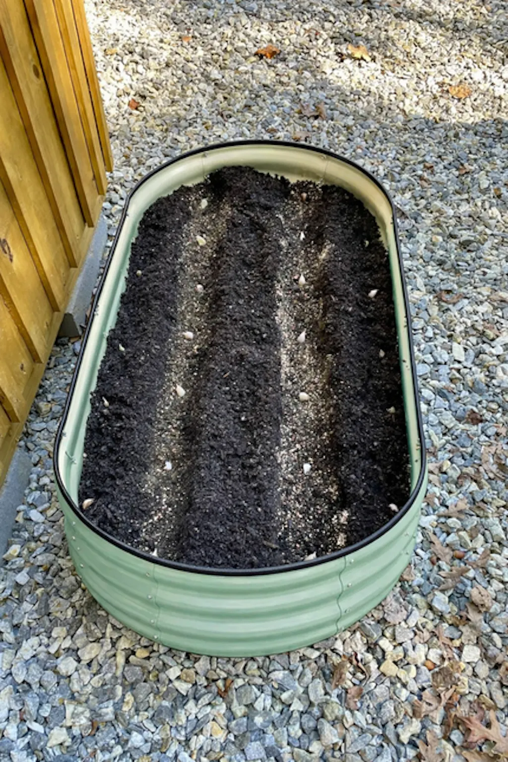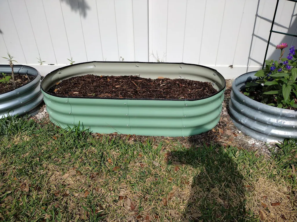 This thing is solid. The galvanized metal feels thick and strong, and once filled with soil it doesn’t bow or shift at all. I like the oval shape—it looks cleaner than the typical rectangle beds. The rubber top edge is a nice touch and keeps everything safe and smooth.
