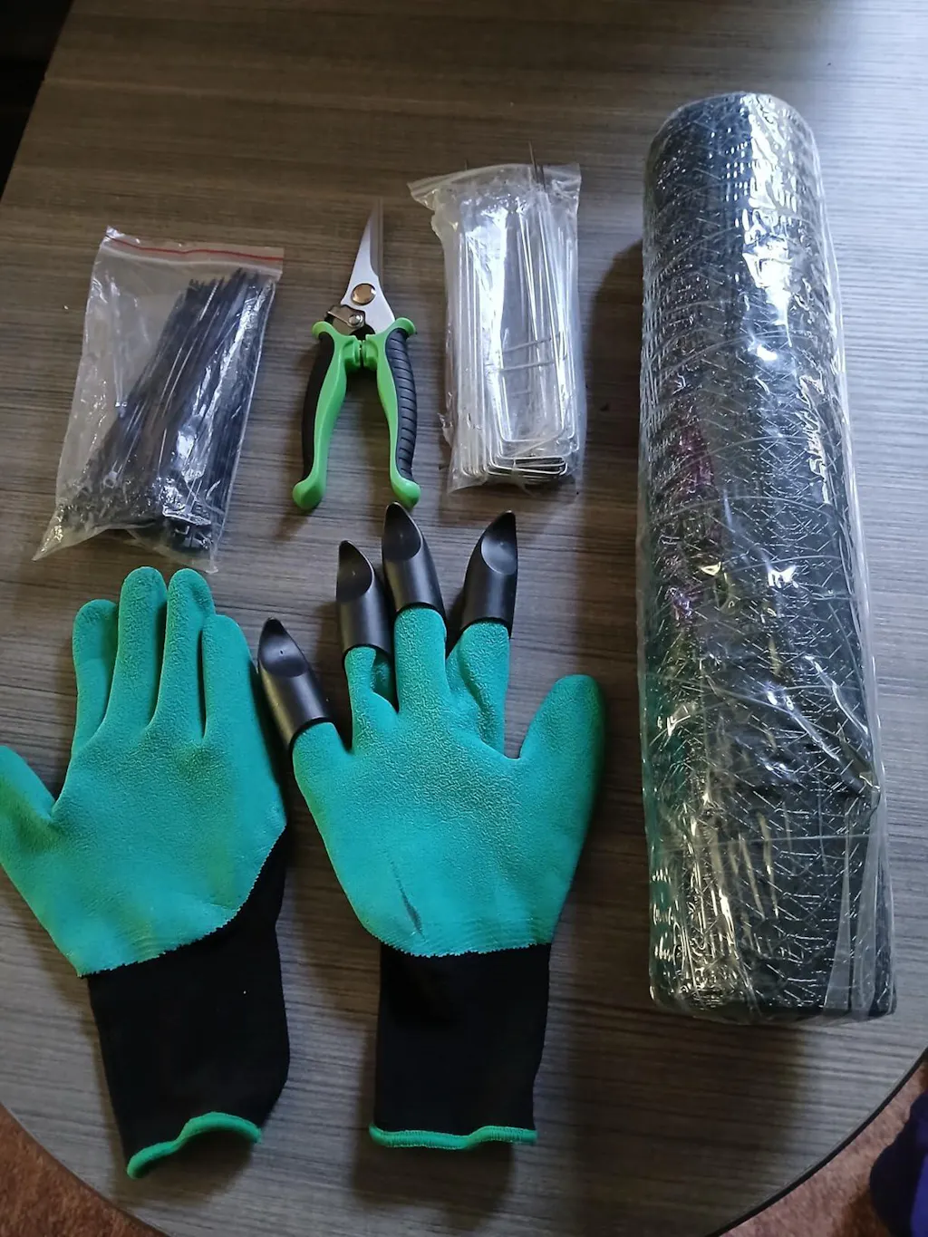 Garvee Garden Plant Protection Netting Kit Vinyl-Coated Wire Mesh Adjustable Reusable Cut-Resistant Gloves 150 Zip Ties 15 Stakes DIY Fence for Vegetables Flowers