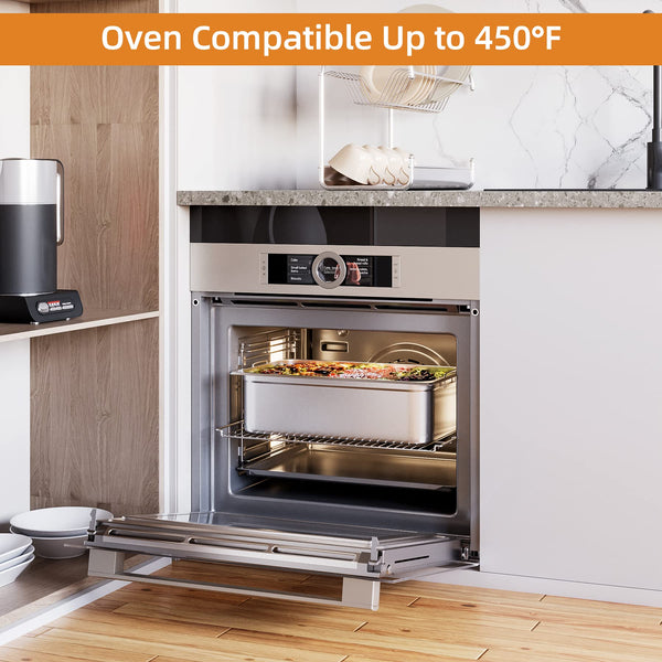 - 【Durable Design】Integrated hotel pans with anti-jam stacking lugs for easy storing and release.