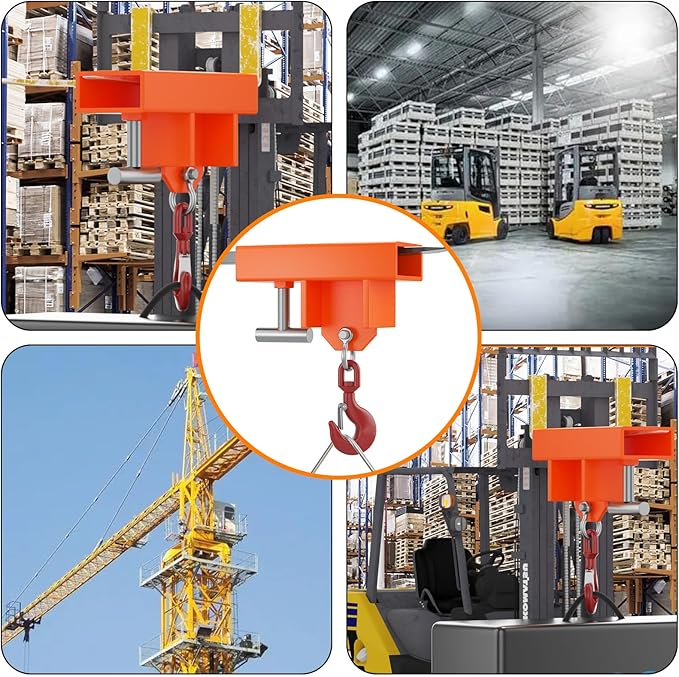 Garvee Forklift Lifting Hook Attachment, 2200 Lbs Capacity Single Mobile Forklift Crane,Forklift Lifting Hoist with Swivel Hook and Large T-Screw, Orange