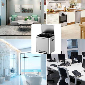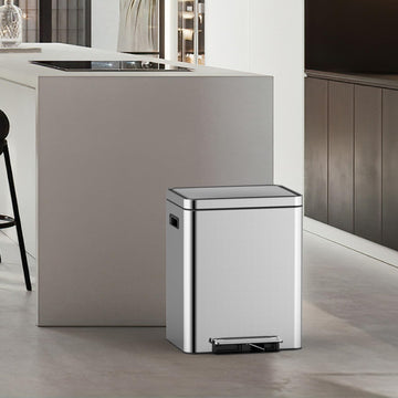 Garvee 36 L/9.5 Gallon Dual Trash Can, Rectangular Waste Basket with Metal Lid & Step Foot Pedal, Double Compartment Classified Garbage Can, Stainless Steel Trash Can with Removable Inner Bucket