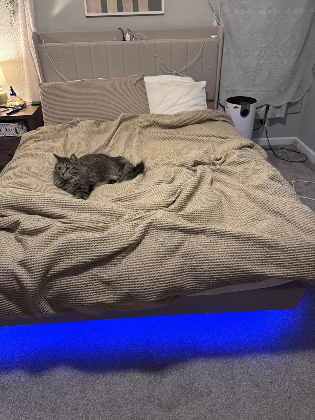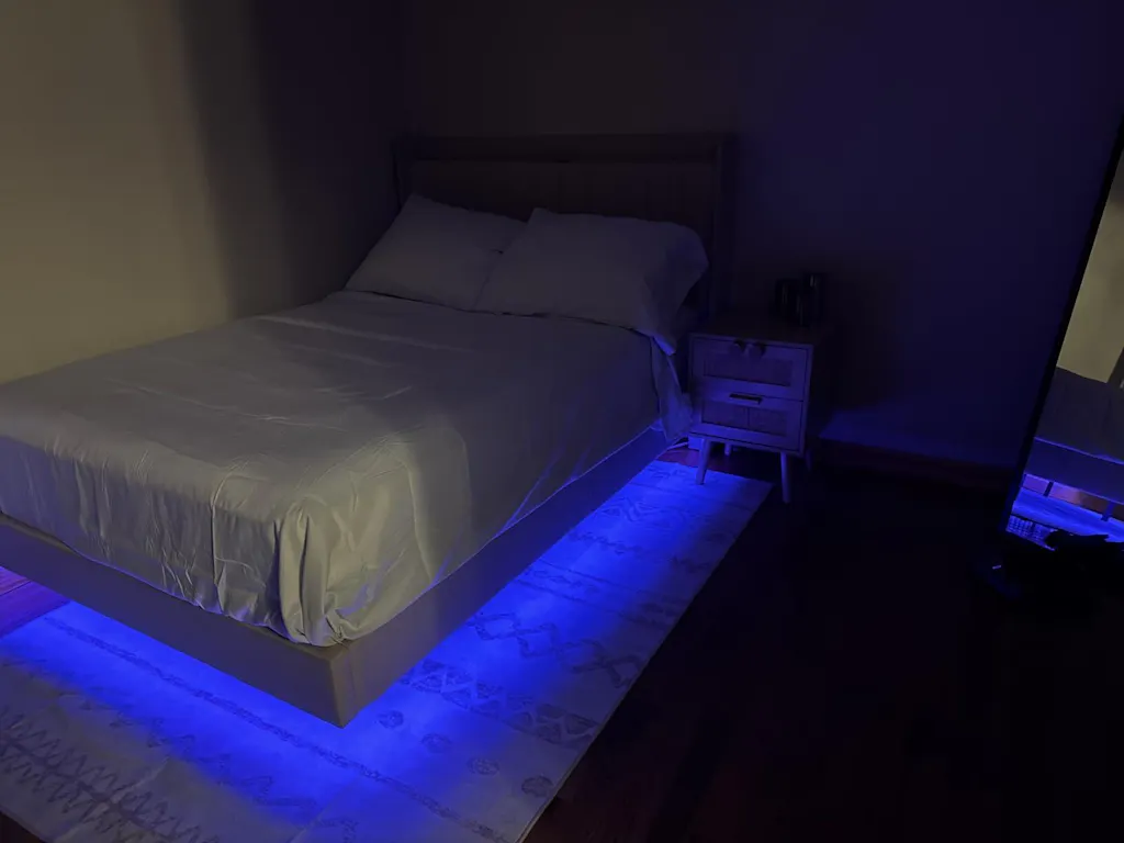- 【Bed Frame with LED Lights】-This bed frame supports and under-bed area RGB LED light. beautiful Multi-colour RGB LED Light(There are over 60000 colors to choose from), Phone App remote Control, and multiple control modes. You can freely set the brightness, color, mode, timing function, and design your light show to your heart's content.