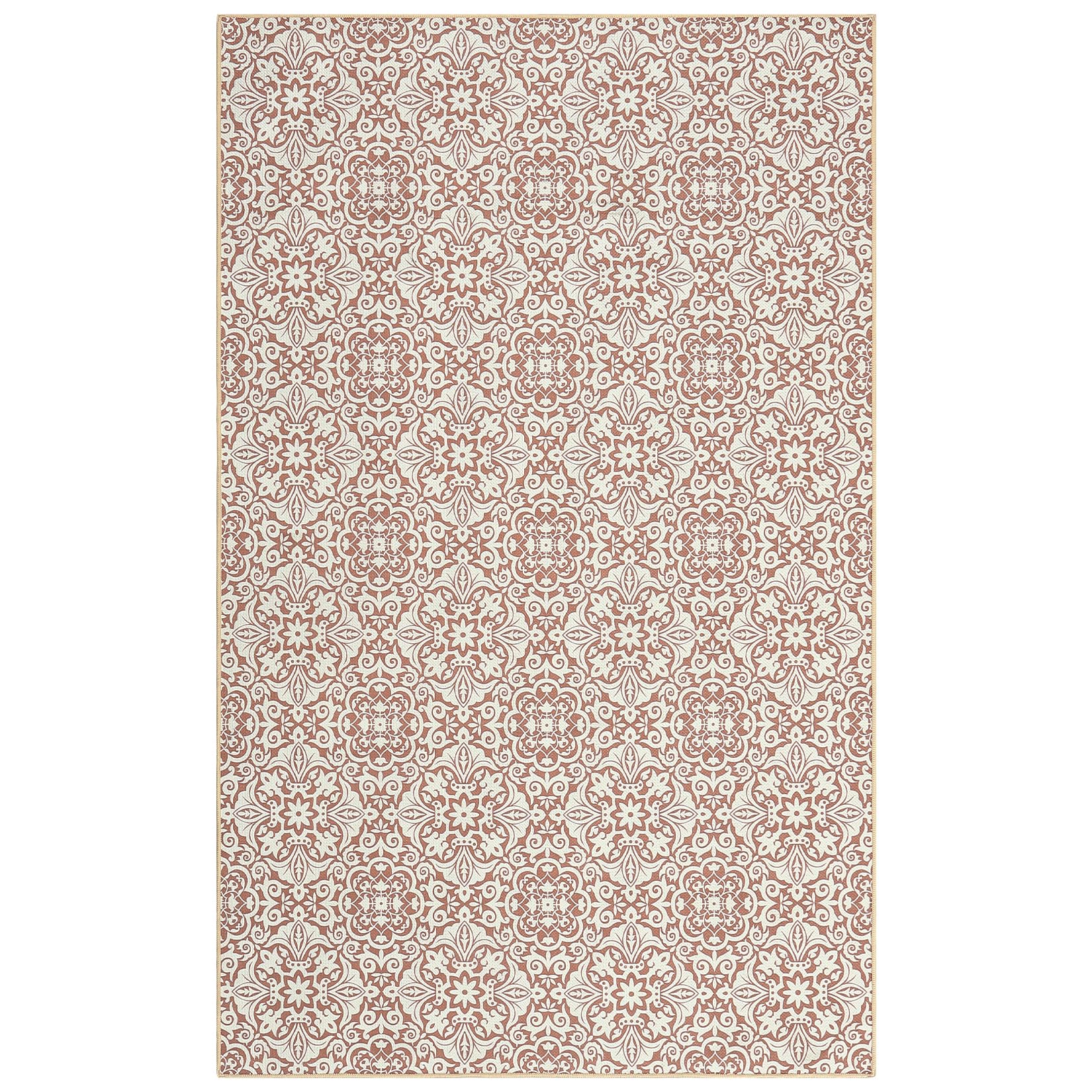 Garvee Indoor/Outdoor Area Rug 5x8 Moroccan Geometric Area Rug Non Slip Washable Rug Patio Rug Vintage Easy Clean Rustic Floor Carpet for Living Room Dining Room Kitchen Backyard Porch Rust