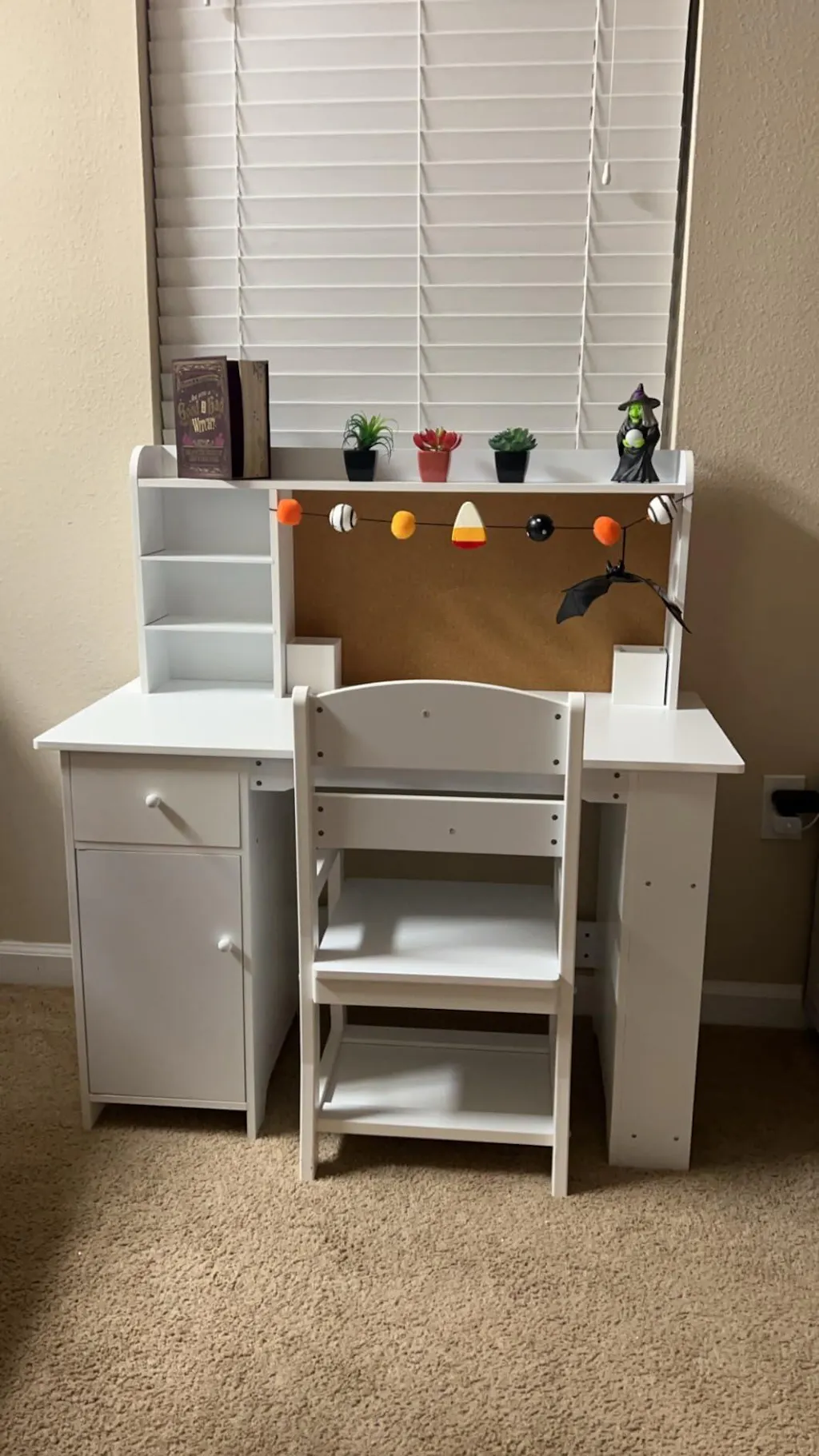 I’m happy overall with this kids desk and chair set. It looks good once put together and provides plenty of storage space with the shelves, cabinets, and cork board. My child enjoys having their own spot for homework and crafts, and the chair size works well for younger kids.The package is very heavy, so moving it inside and getting it to the right room was a bit of a challenge. Assembly took some time but was straightforward enough once I laid everything out. The desk feels sturdy for daily use, though I wouldn’t call the materials top-notch.For what it is, the price feels a little on the high side, but not unreasonable compared to similar sets. If you’re looking for a solid study space for a child between 3 and 8 years old, this desk does the job well.
