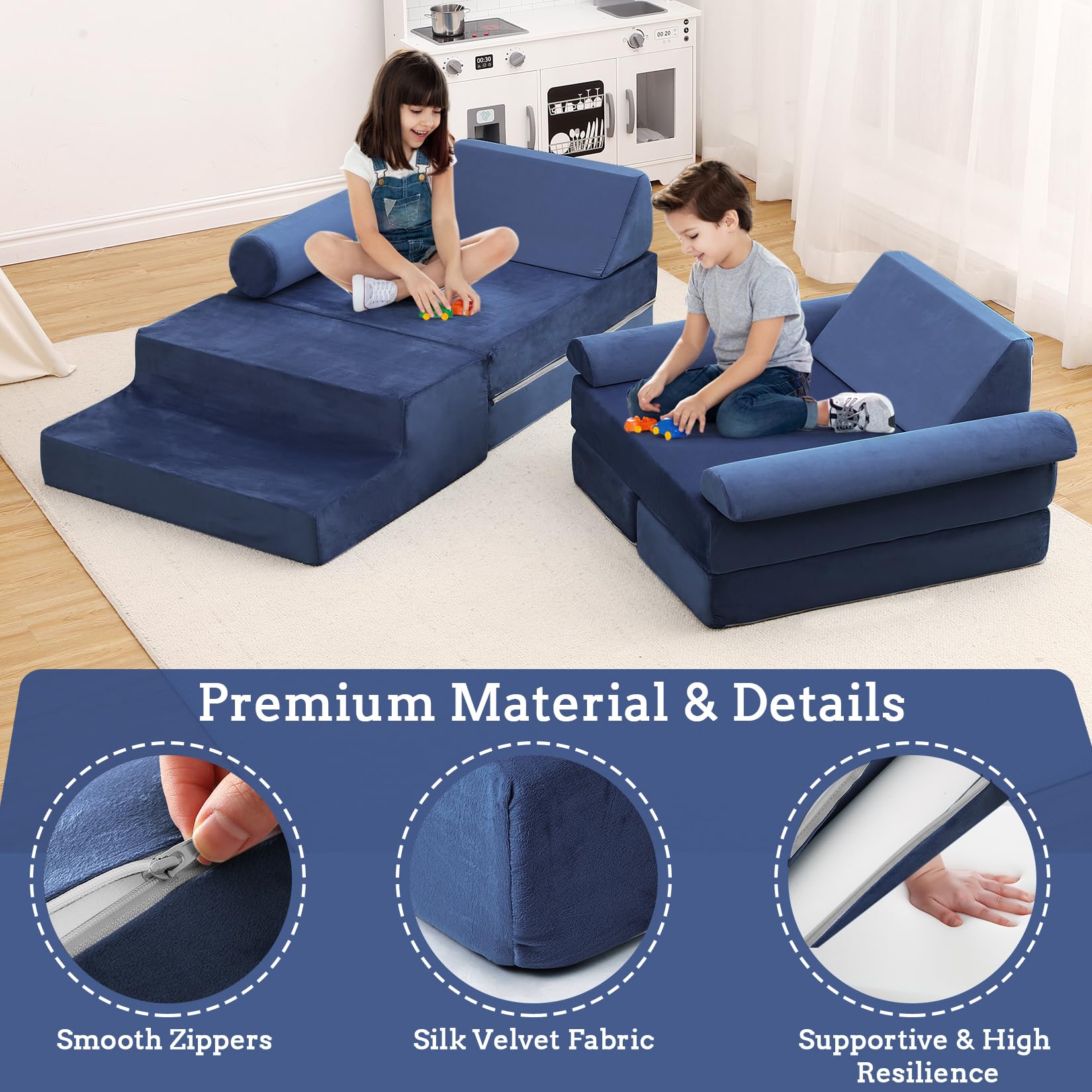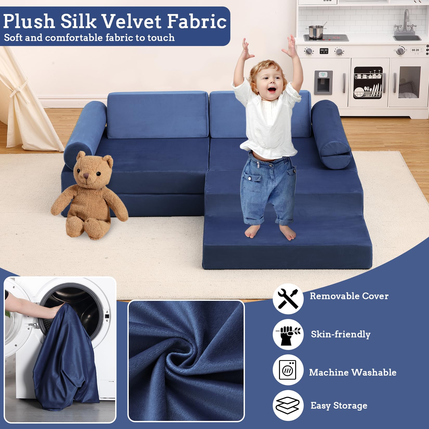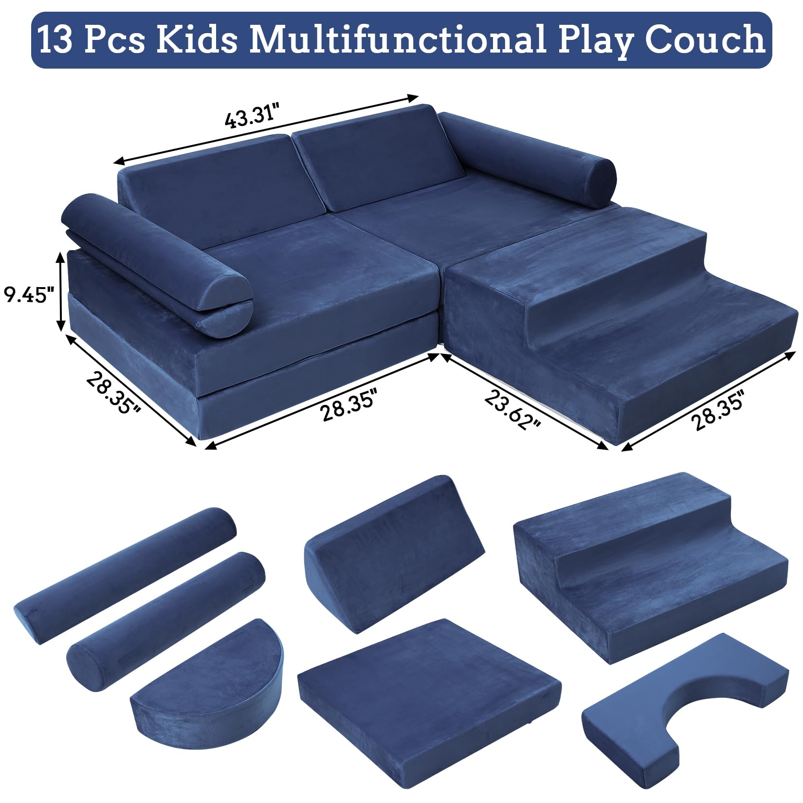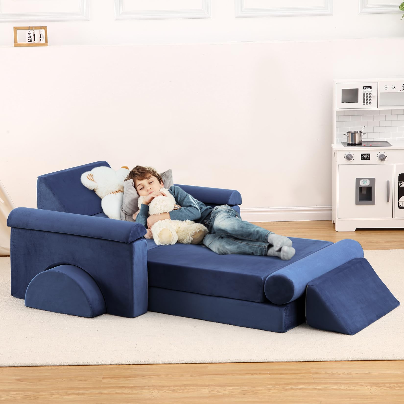 Introducing the GARVEE Nugget Couch, a 13-piece modular kids play sofa that brings creativity and comfort to any playroom. Designed for toddlers and babies, this Navy Blue floor couch is more than just furniture - it's a playhouse and play set all in one!
