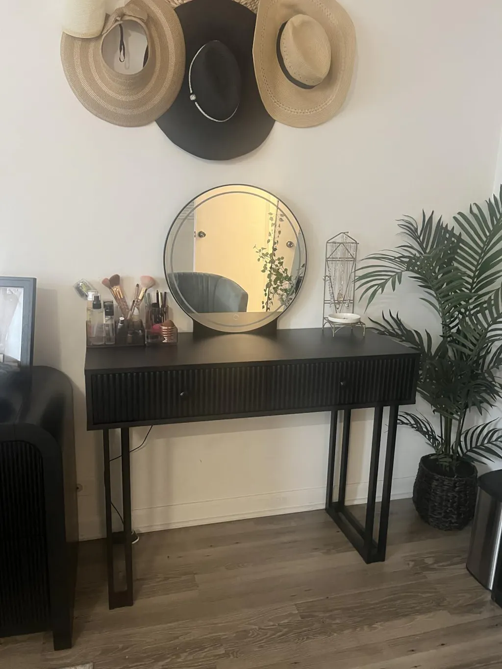 - Sturdy Structure & High Quality - Combines with flat boards and a sturdy metal frame, ensuring the stability and long-time use of this beautiful vanity. Anti-tip Device behind the black vanity desk, you can fix it on the wall for children’s safety.