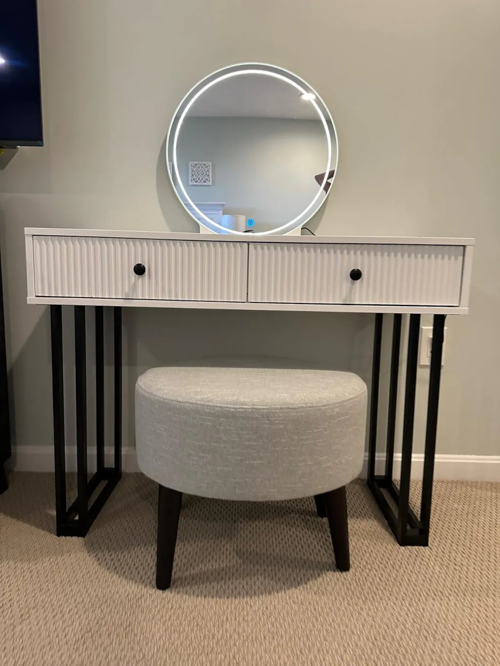 - Stylish&Elegant - This modern dressing table with LED mirror adopts a blister process, which has a beautiful shape and storage function. It is suitable for all home decoration styles and adds a unique charm to your bedroom.
