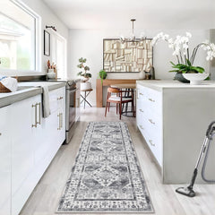 Garvee Washable Rug 8x10 Area Rugs for Living Room Vintage Large Area Rug Ultra-Soft Indoor Carpet Non Slip Foldable Thin Rug Oriental Distressed Throw Carpet for Bedroom Nursery Home Office Grey